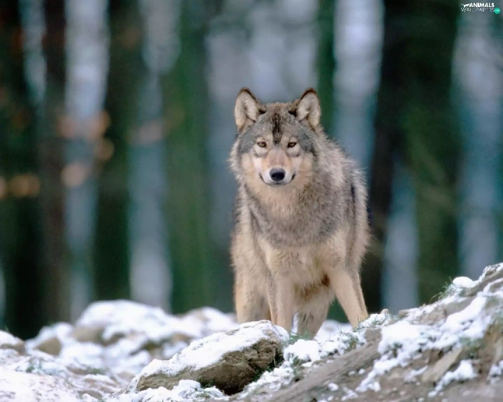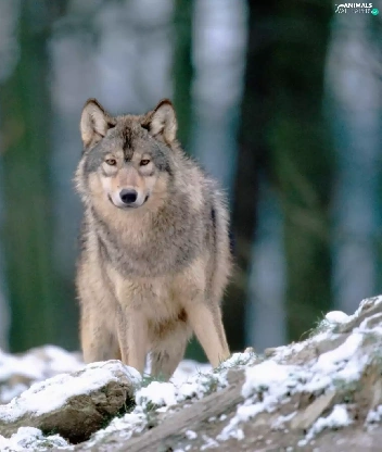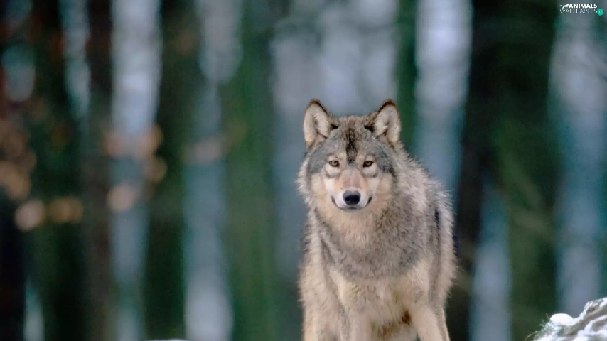 forest, Wolf, snow