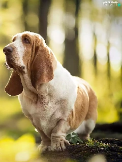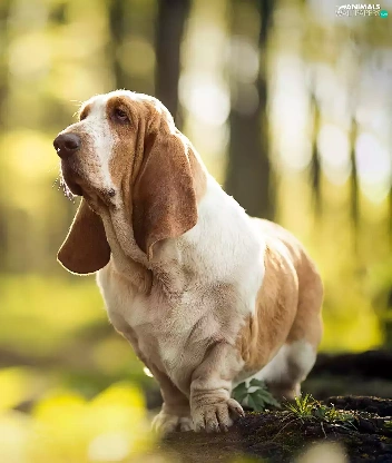 stump, Basset Hound, forest