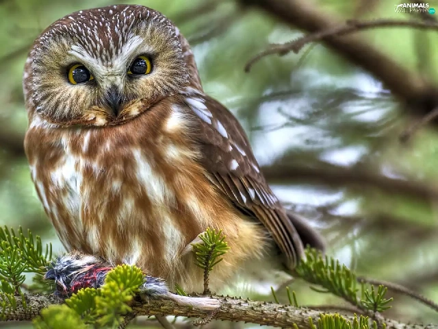 forest, owl, trees