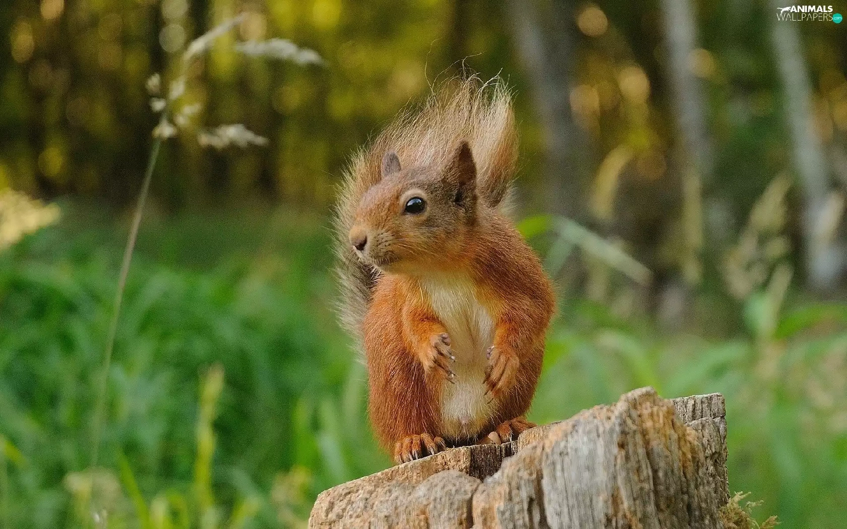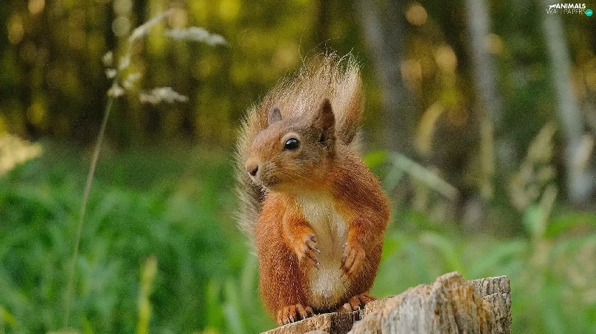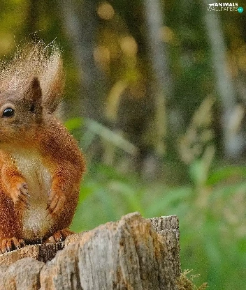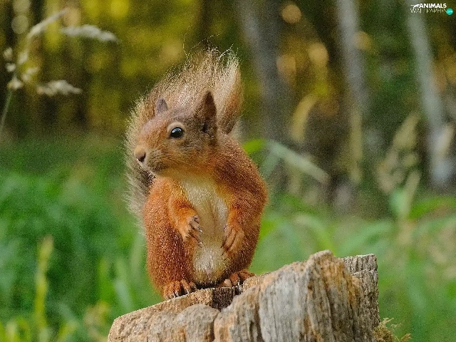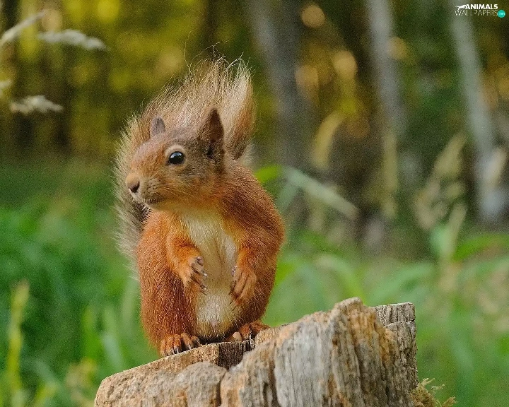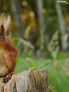 viewes, forest, trunk, trees, squirrel