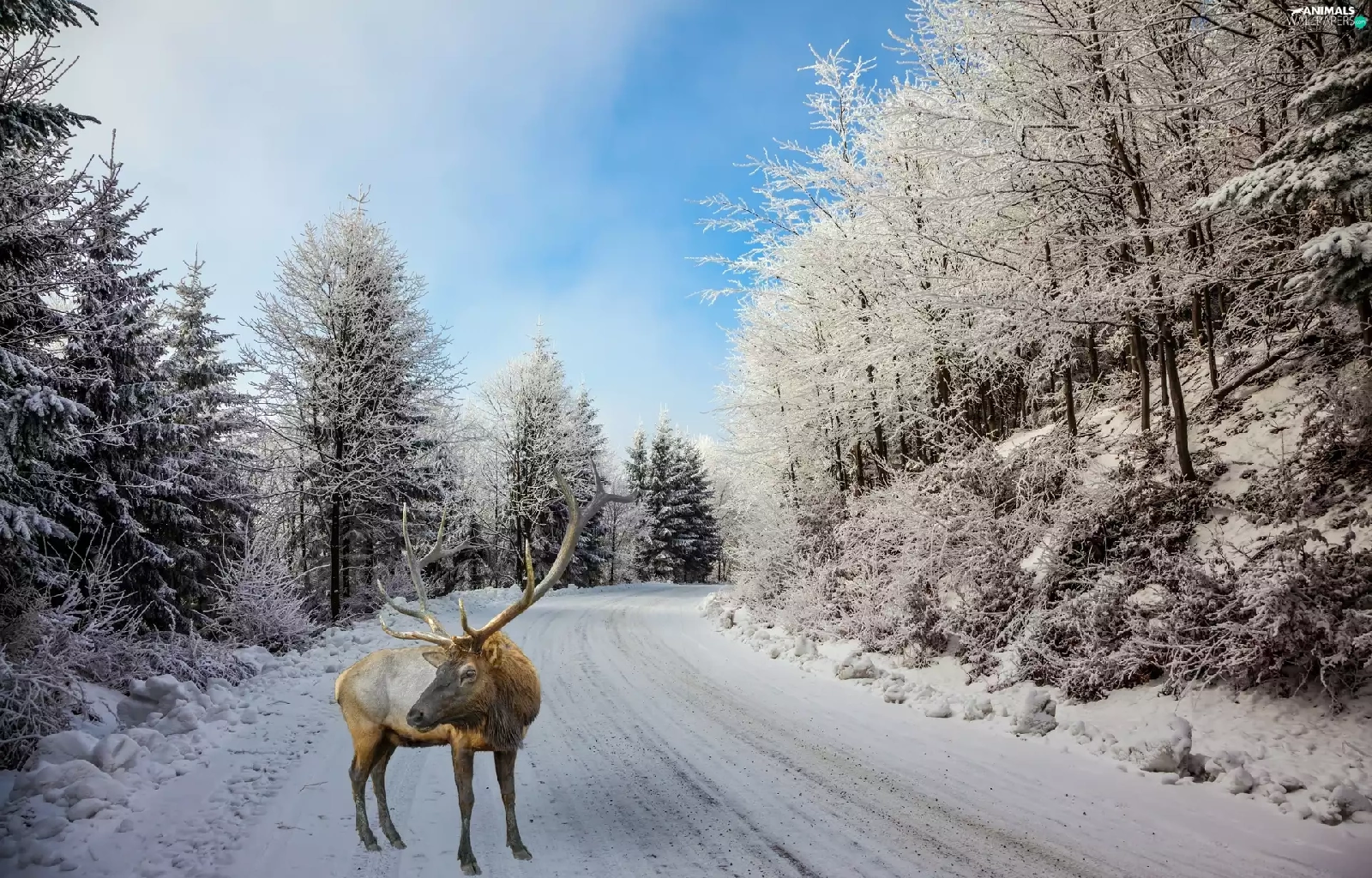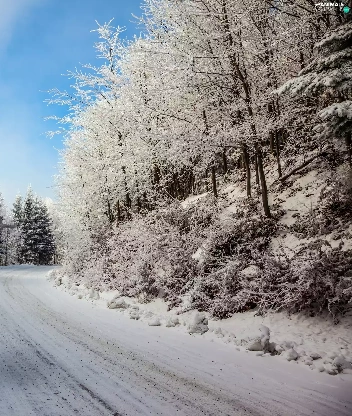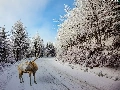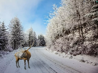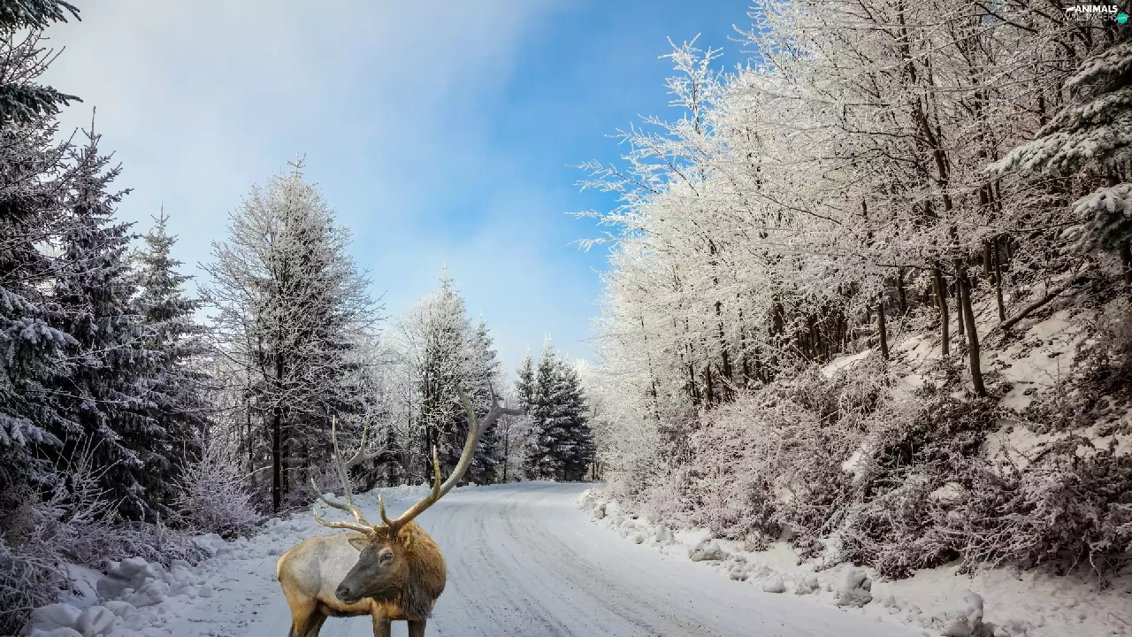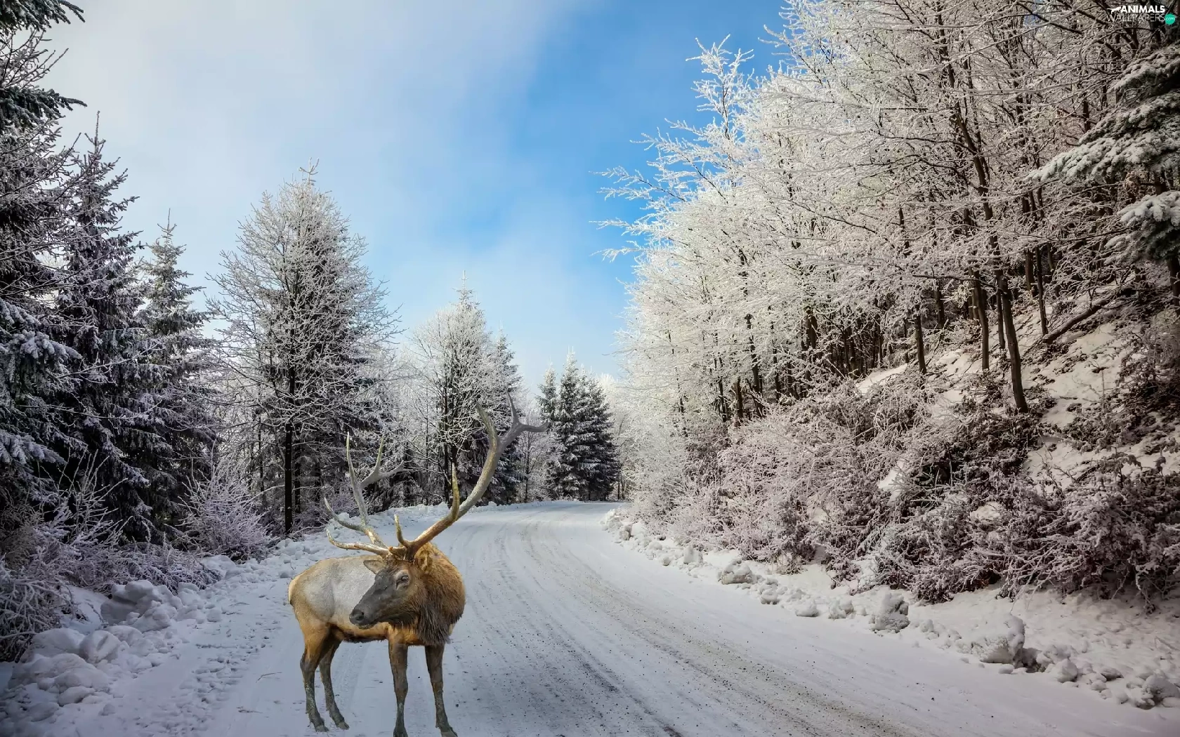 winter, Way, deer, forest