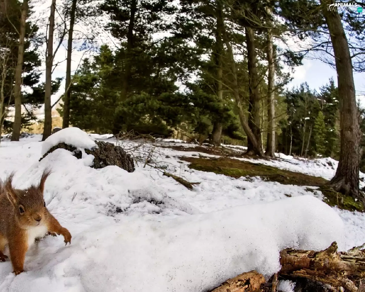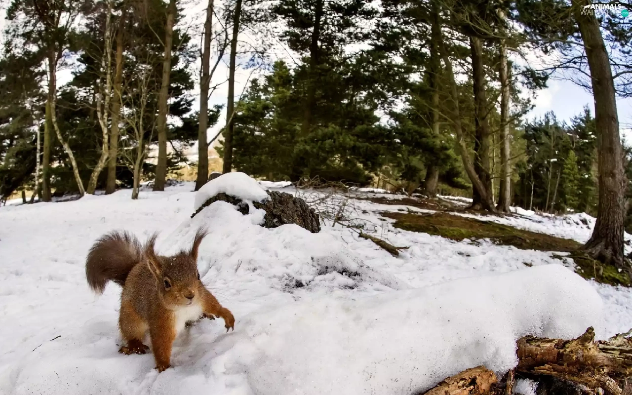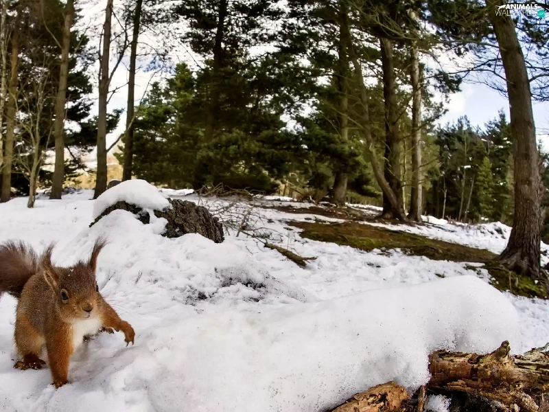 forest, squirrel, winter