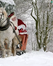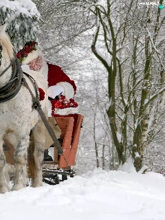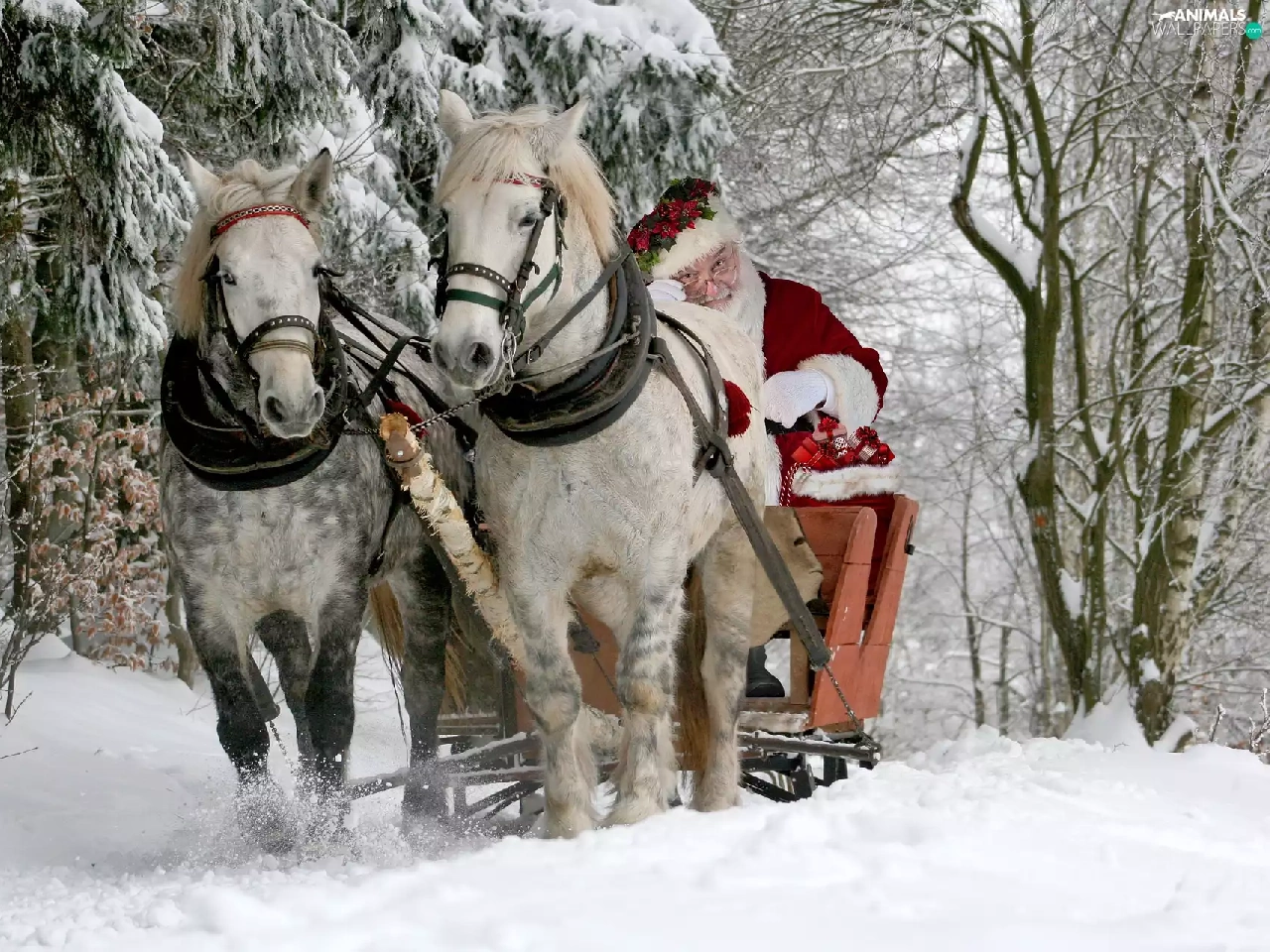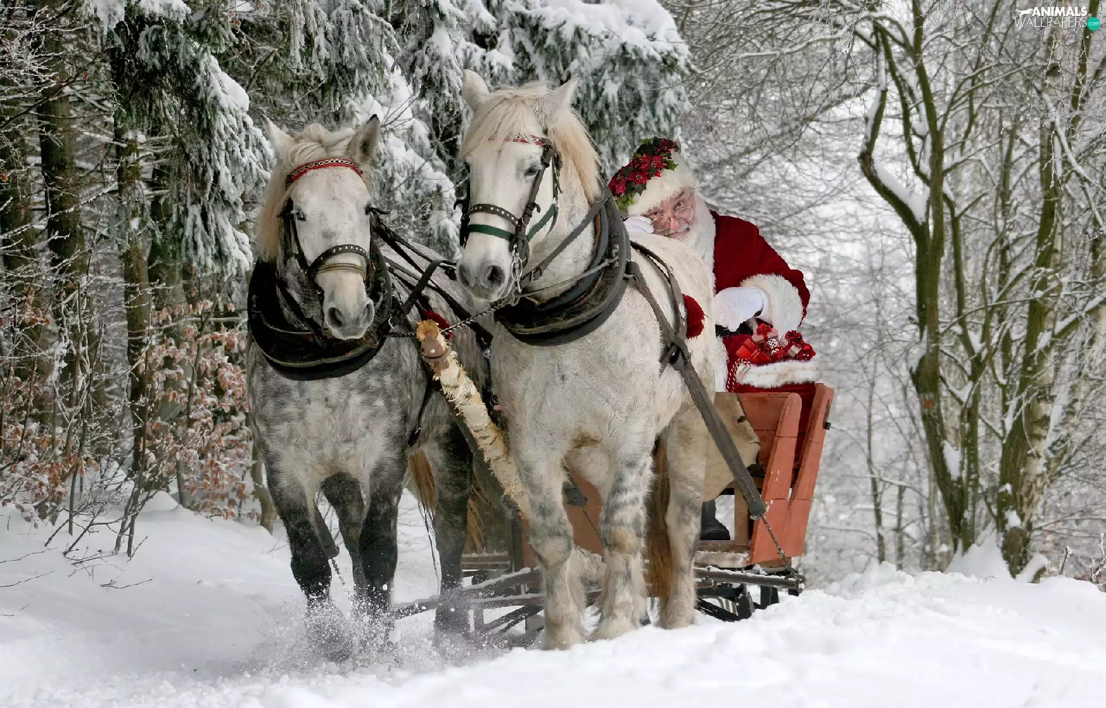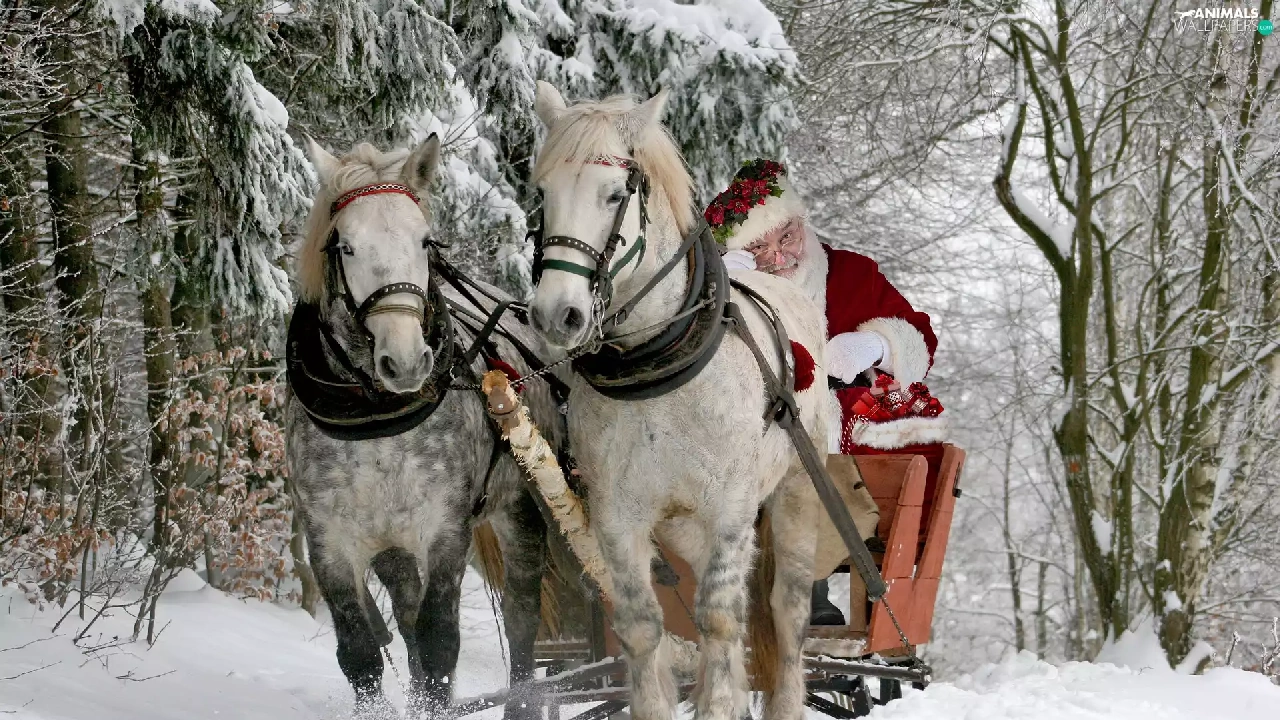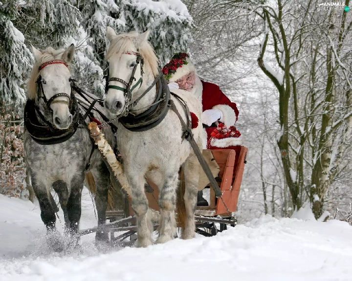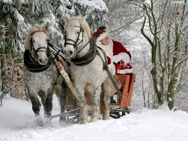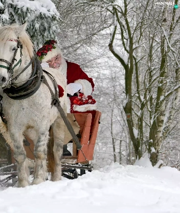 sleigh, Thanksgiving, winter, forest, bloodstock, Santa Claus