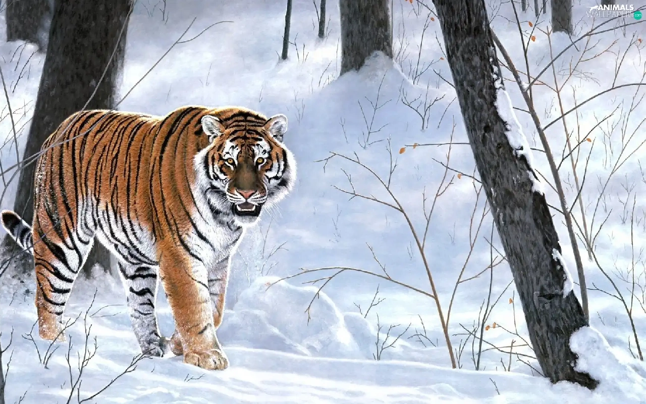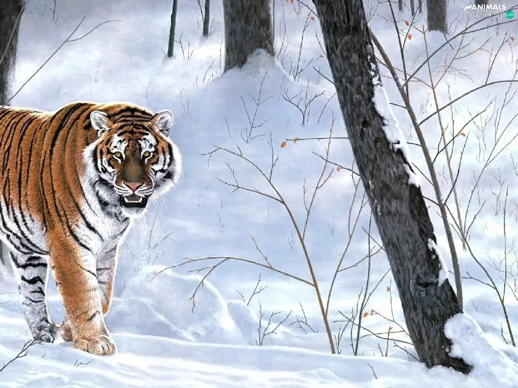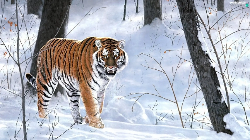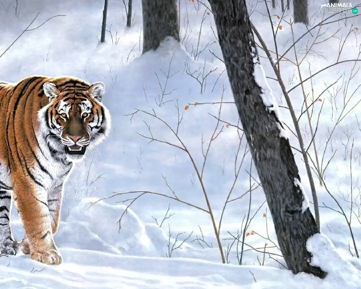 forest, tiger, winter