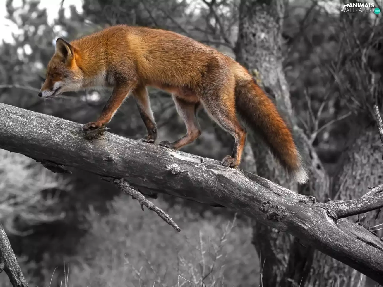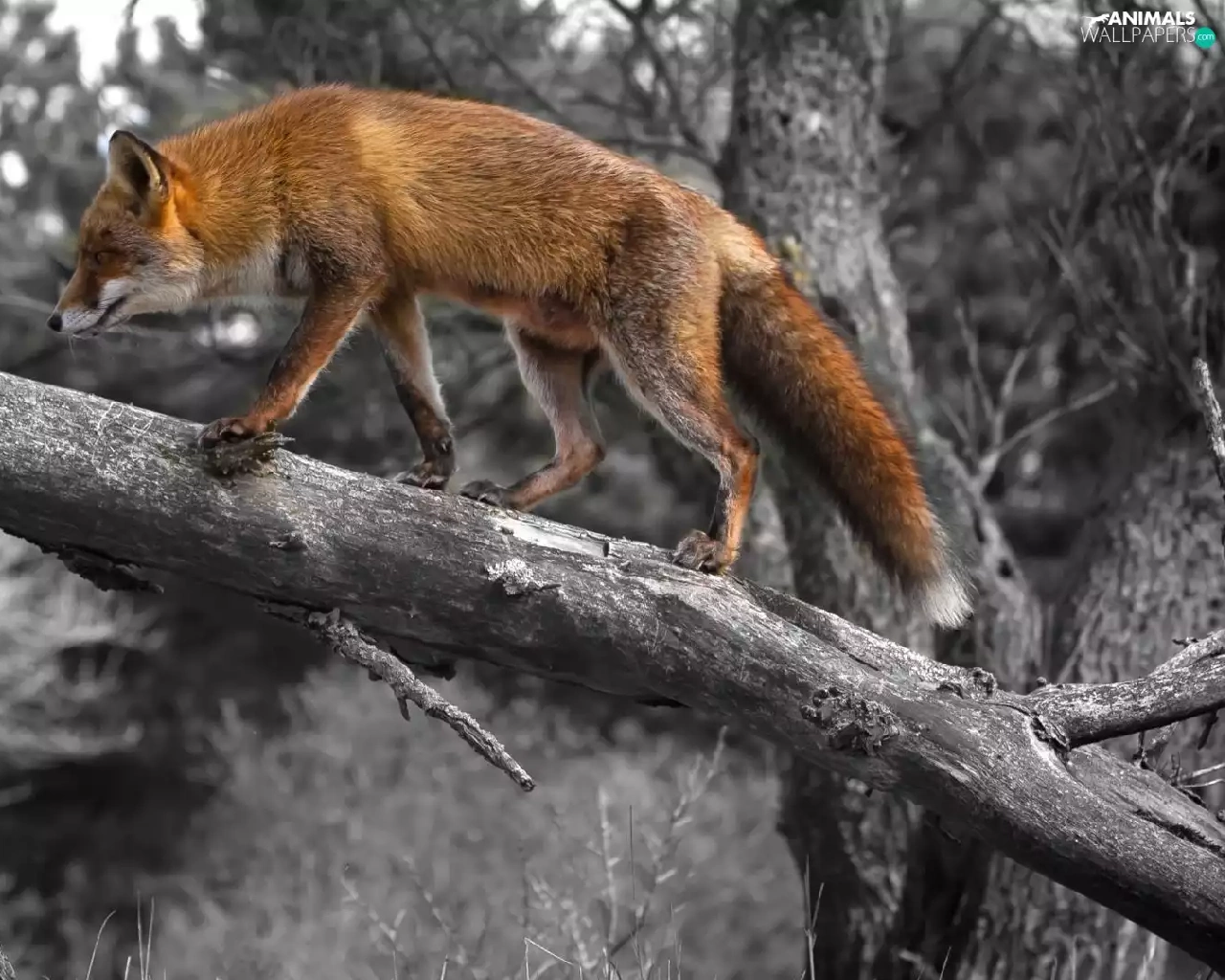 ginger, dry, trees, Fox