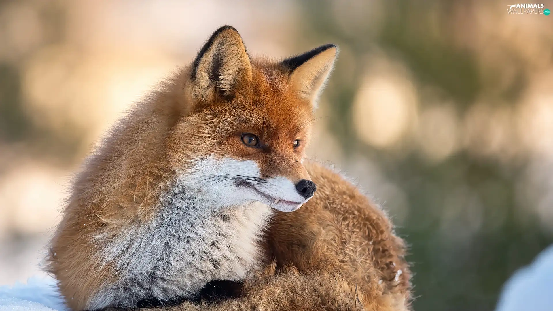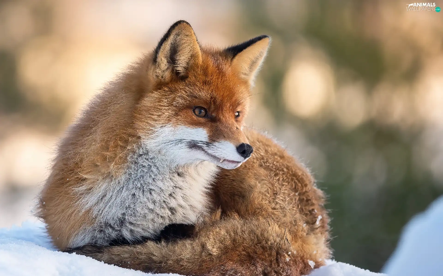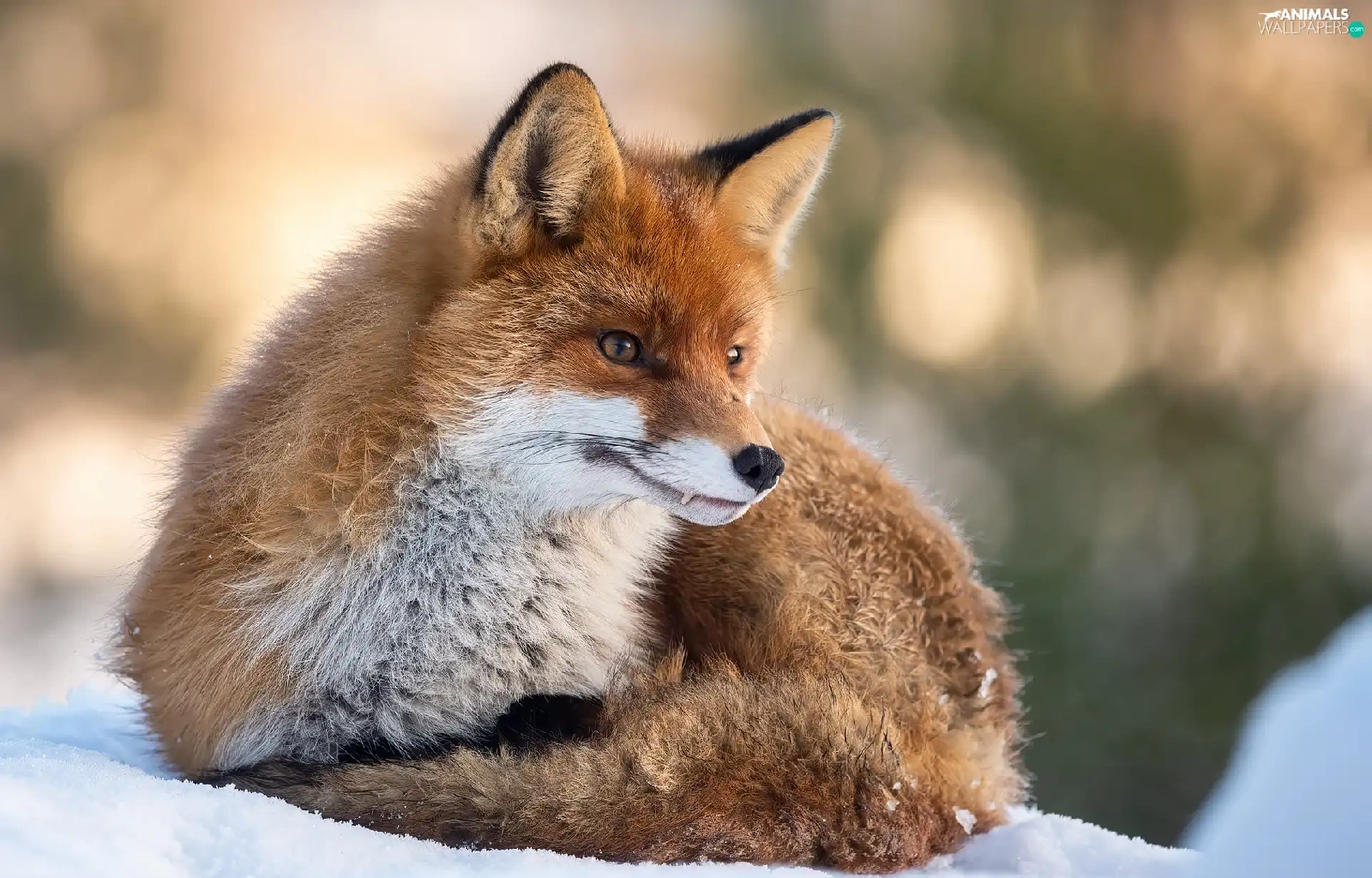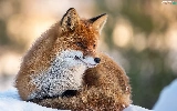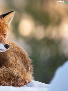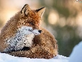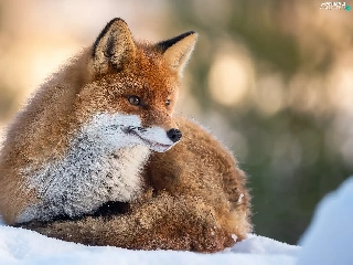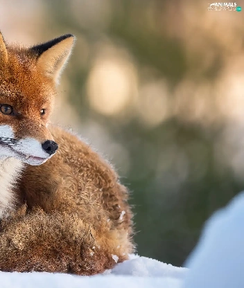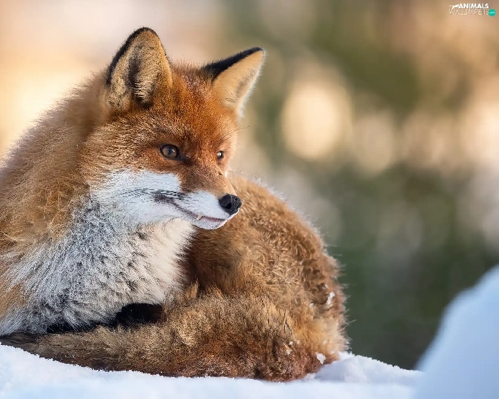 lying, snow, winter, Fox