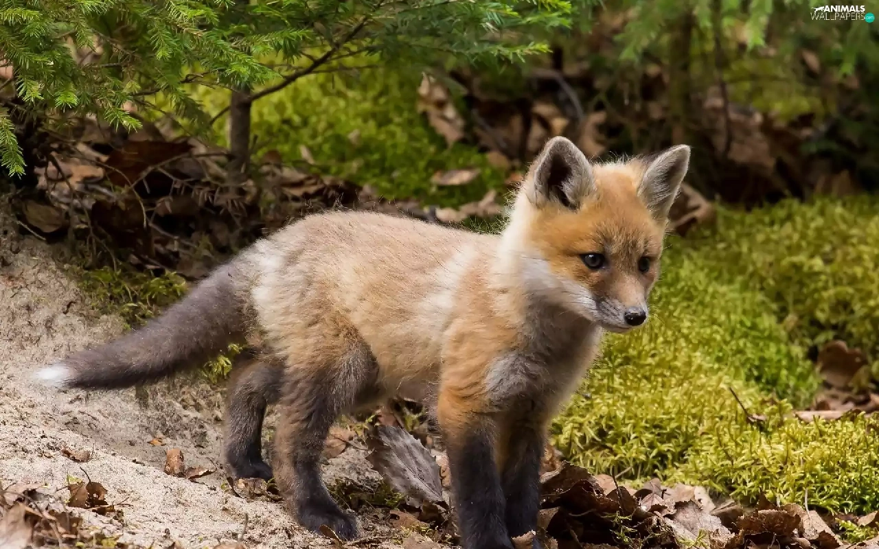 Leaf, young, viewes, fox, honeyed, trees, forest