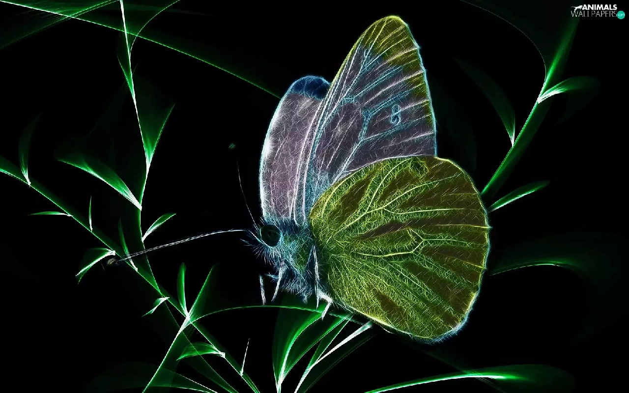background, Fractalius, grass, Black, butterfly