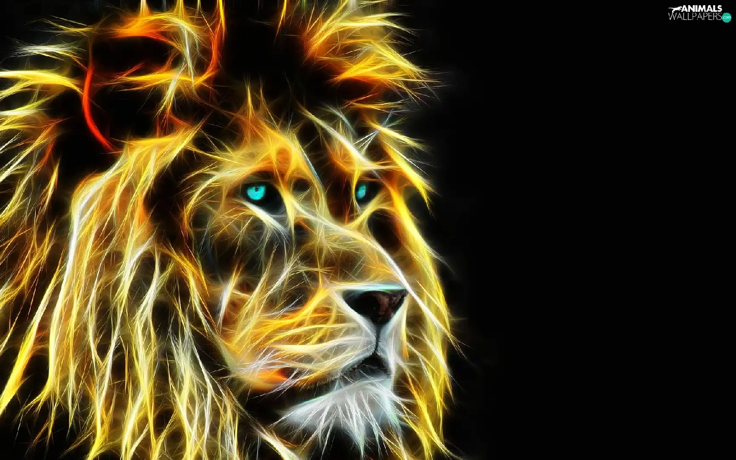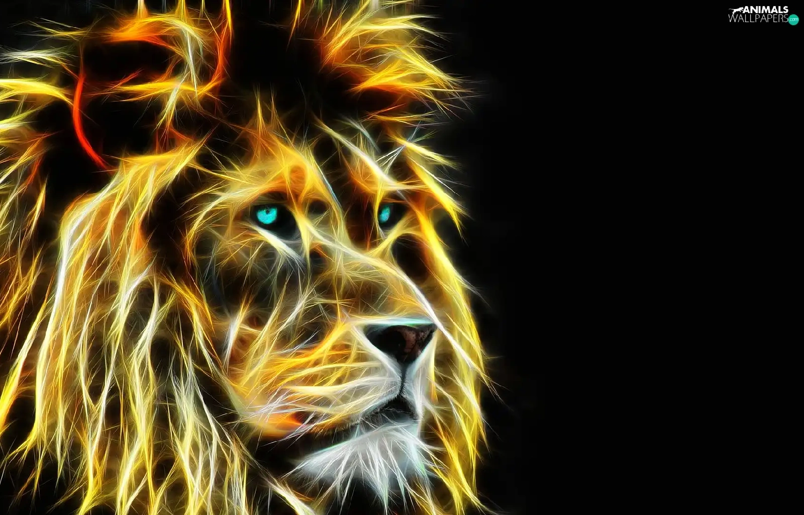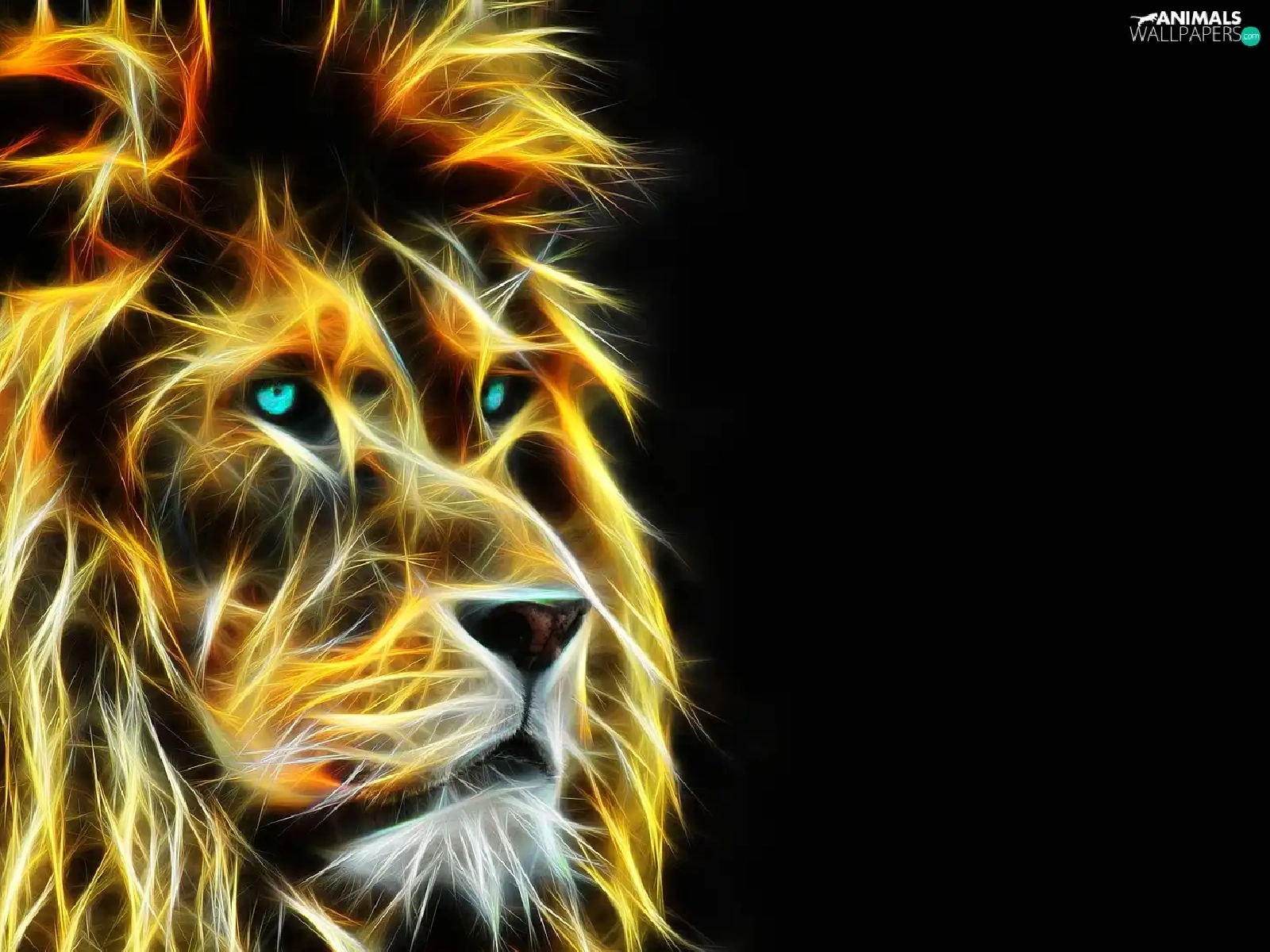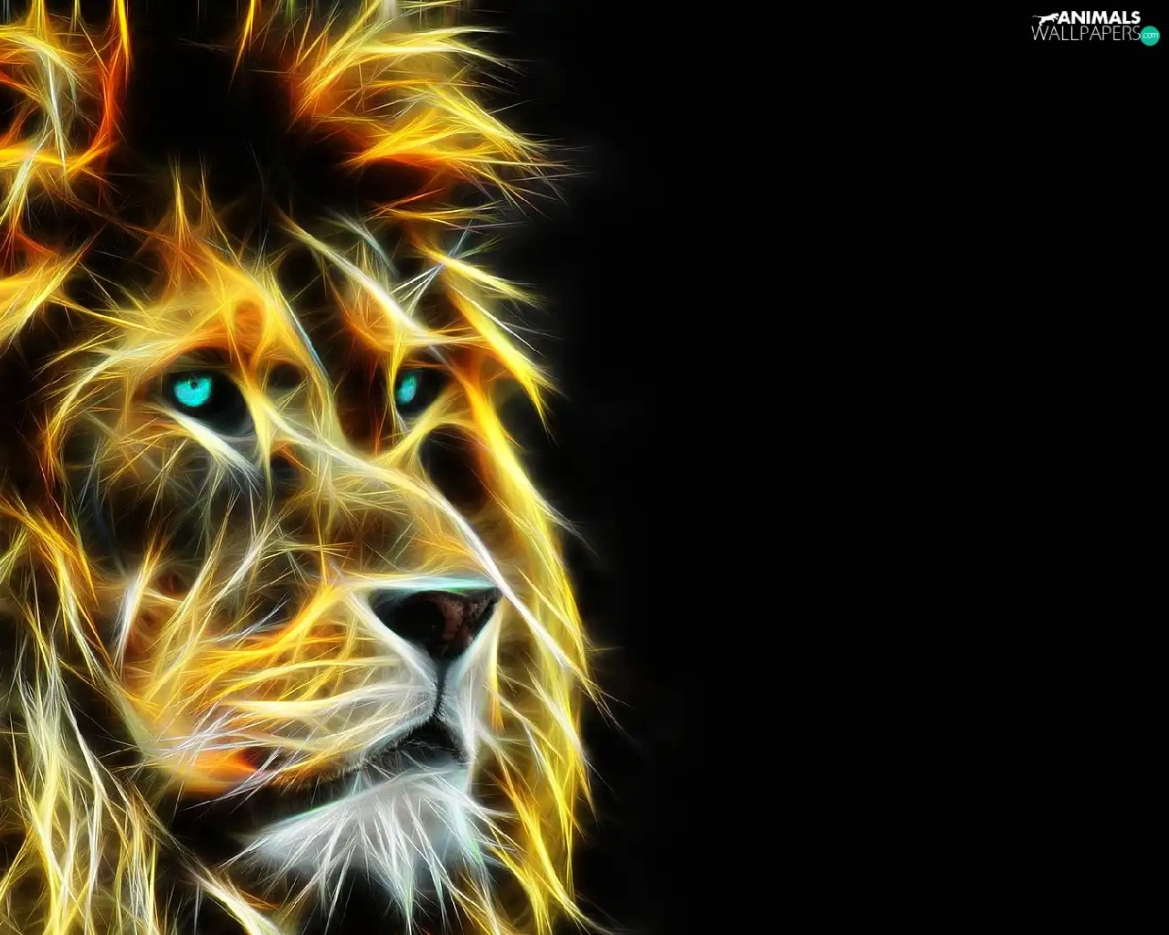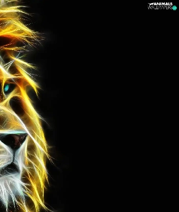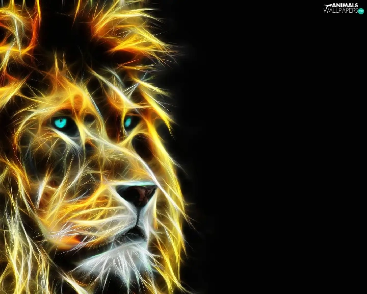 Lion, dark, background, Fractalius