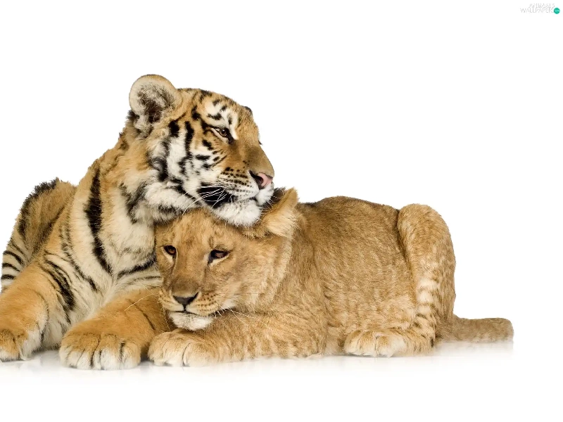friends, Lioness, tiger