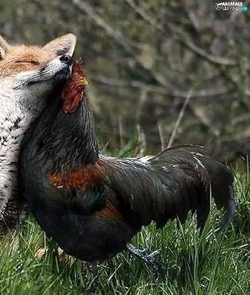 friendship, Fox, rooster