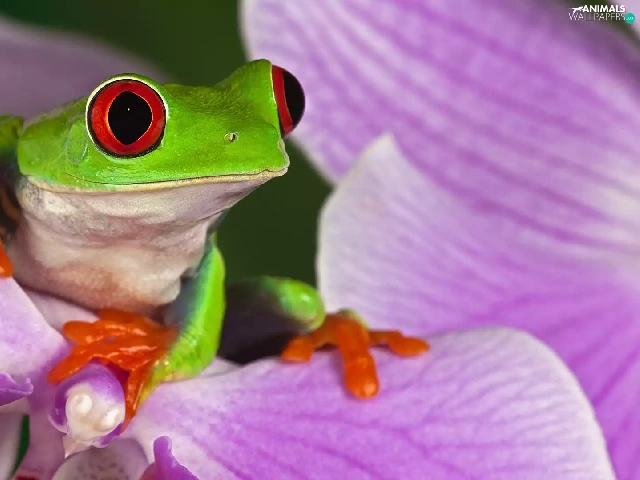 Violet, Colourfull Flowers, frog, frog, Green