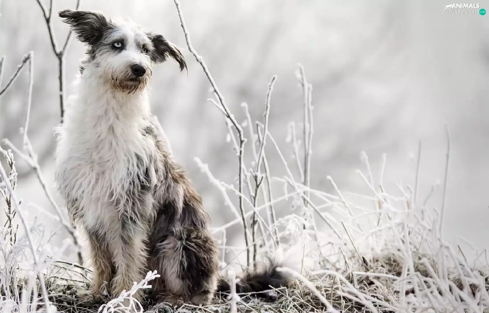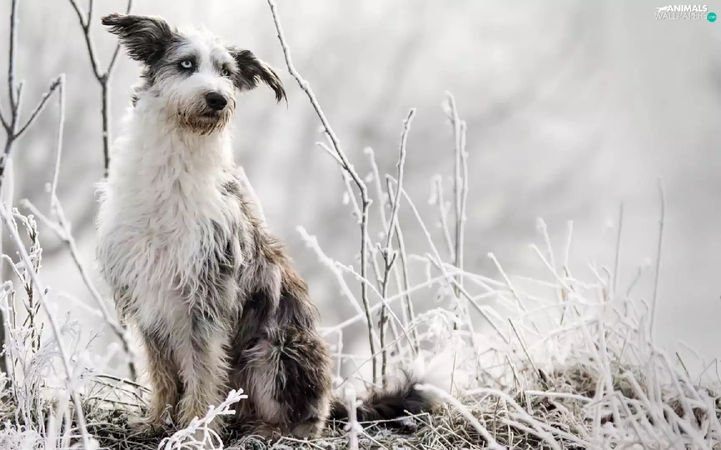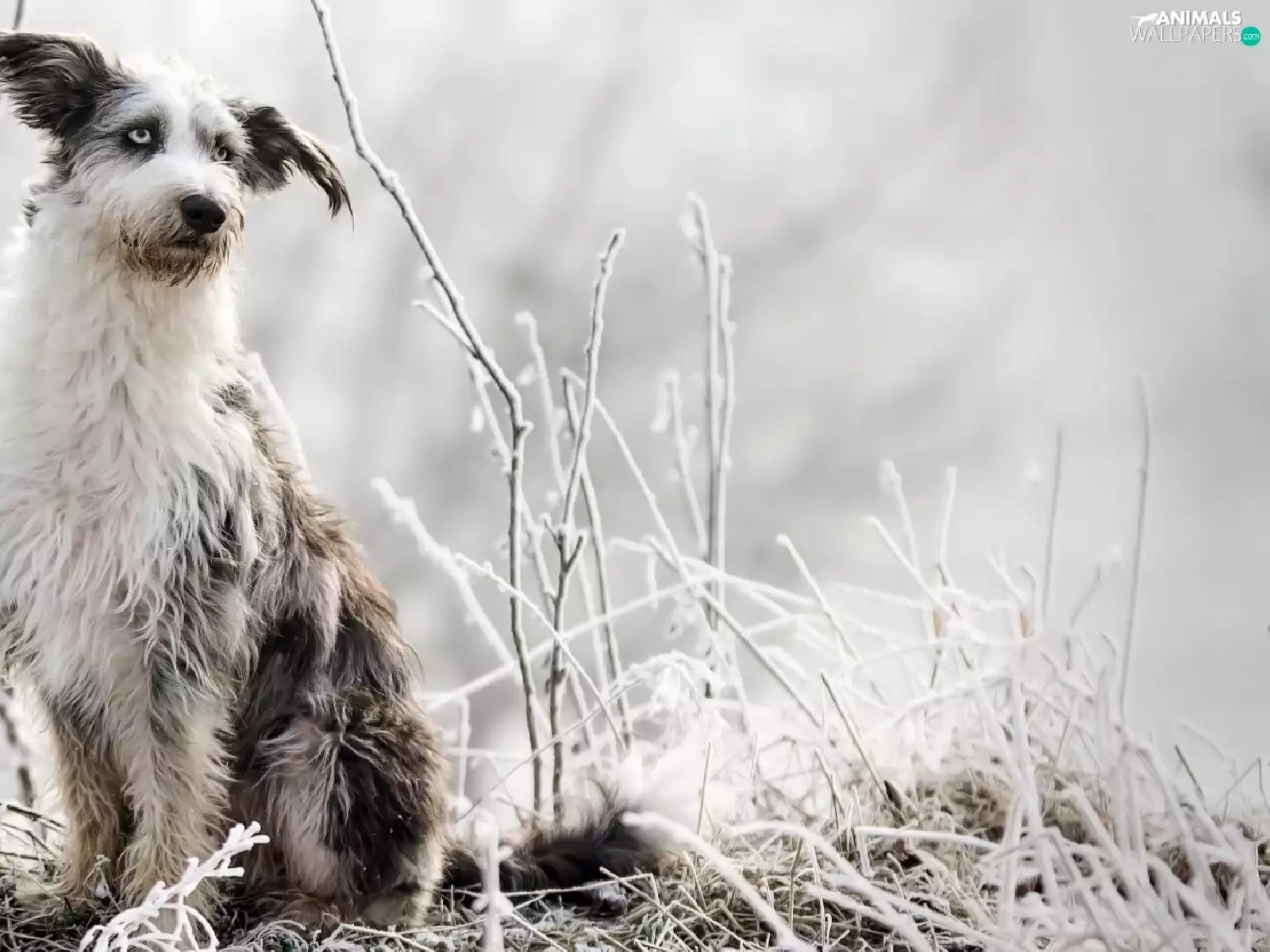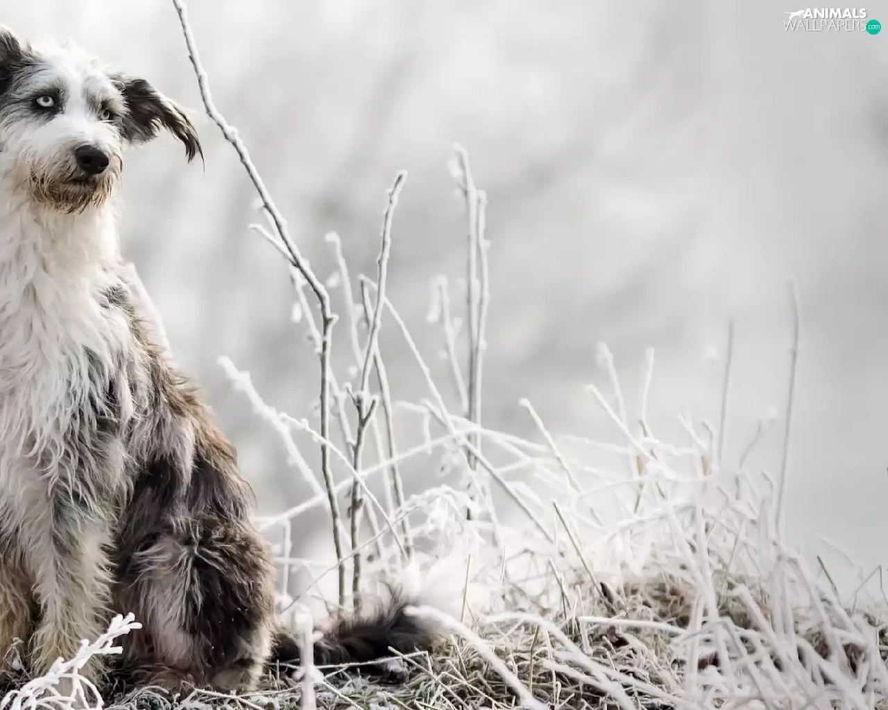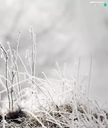 dog, grass, Plants, frosted