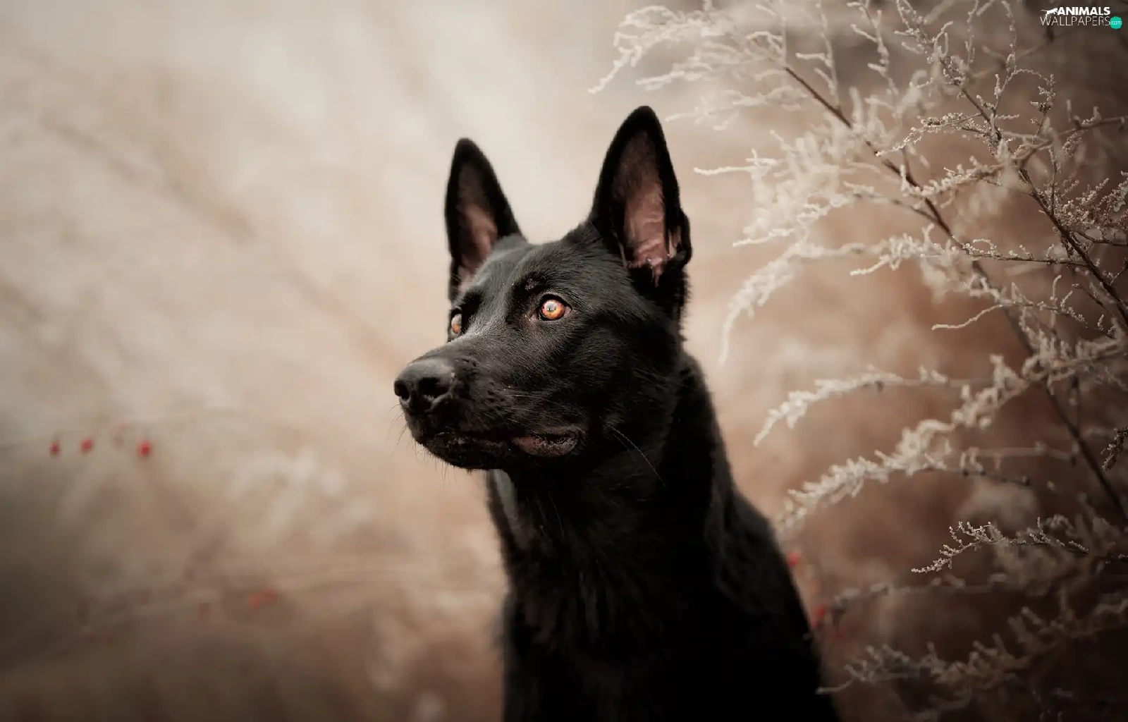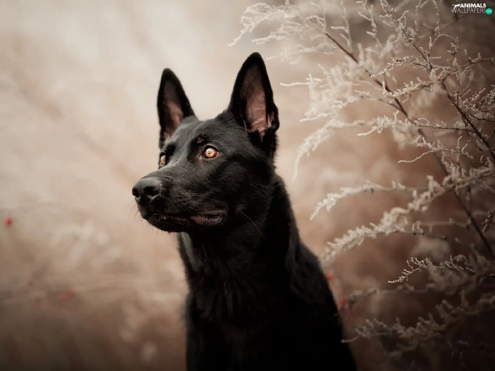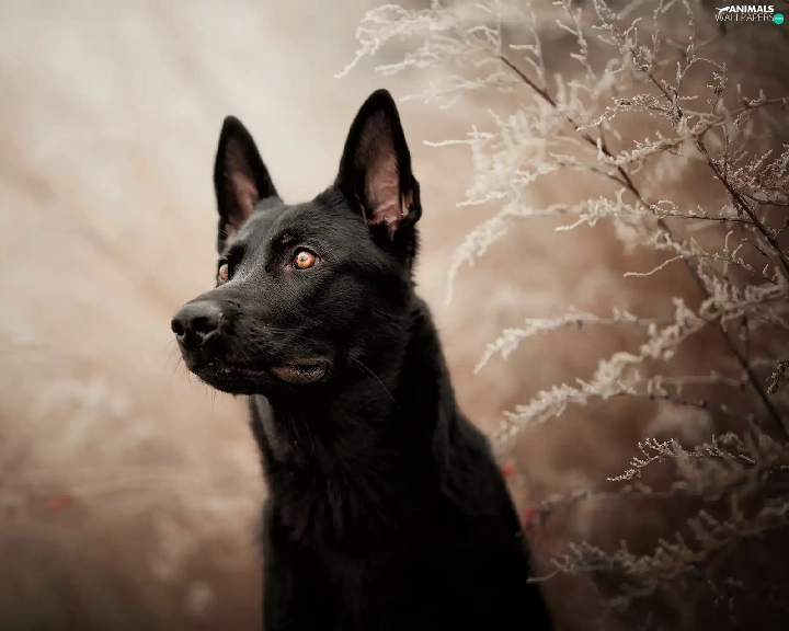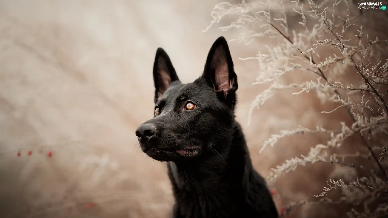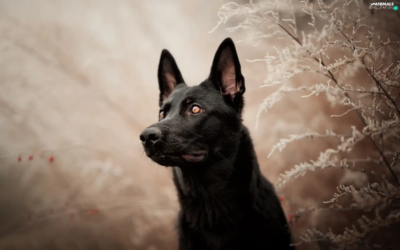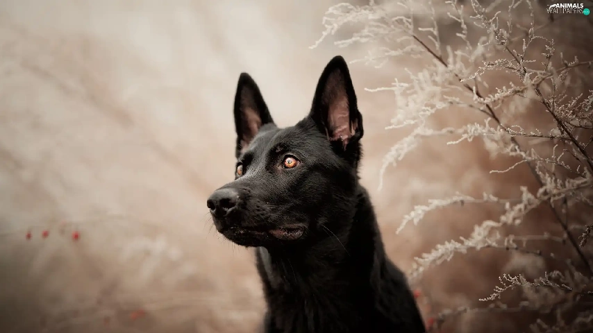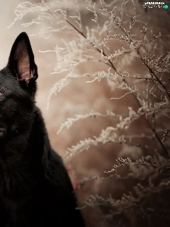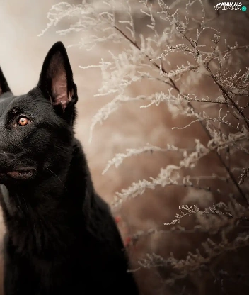 dog, frosty, Plants, Black German Shepherd Dog