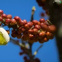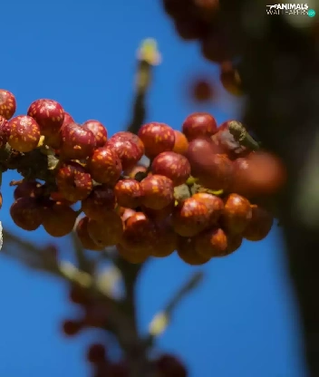 Red, Fruits, Zosterops, twig, Bird