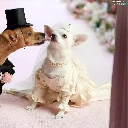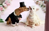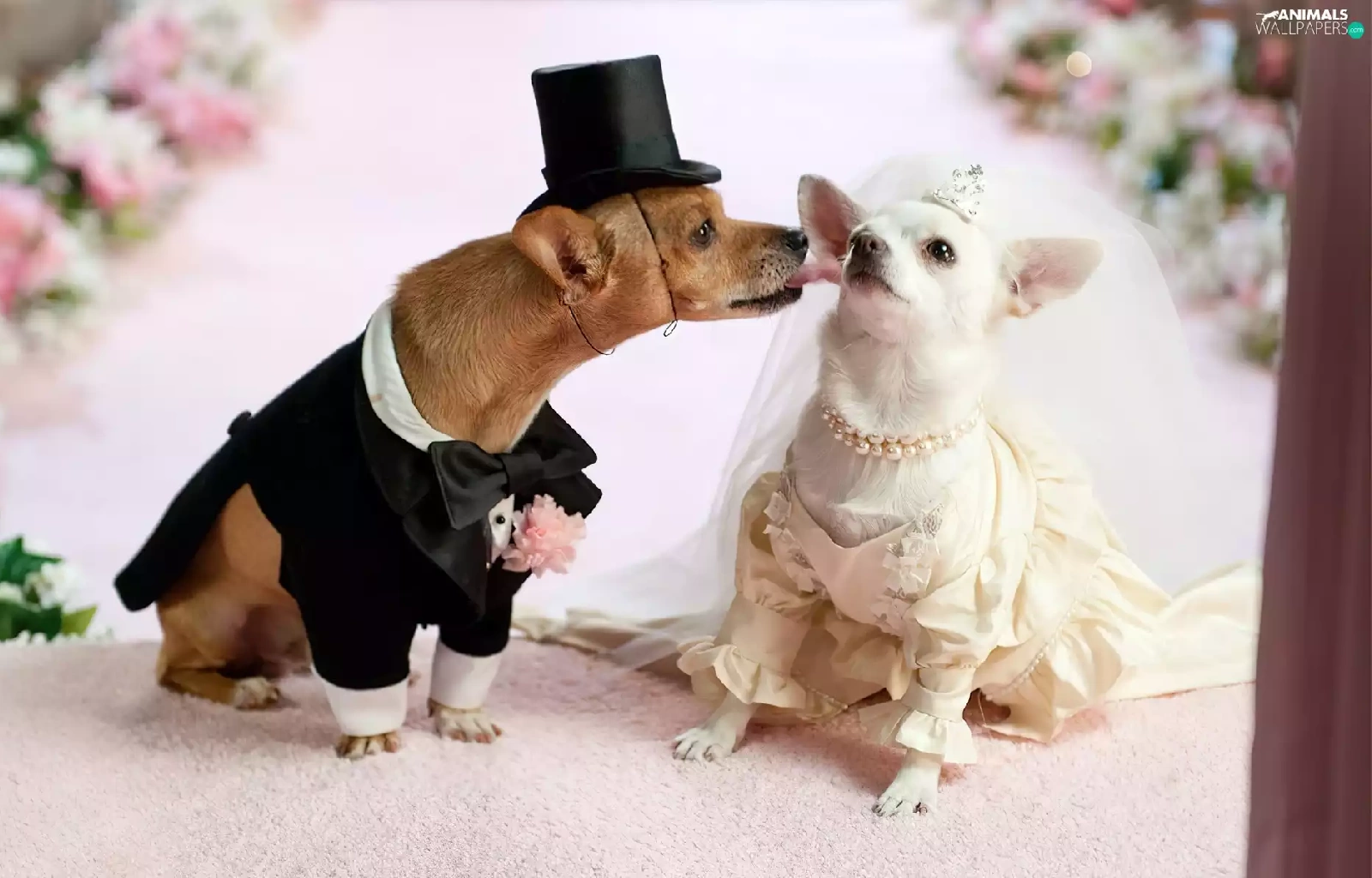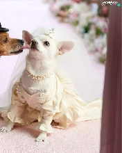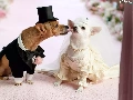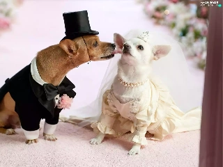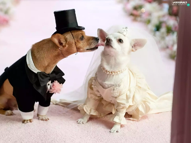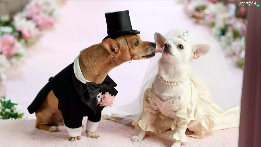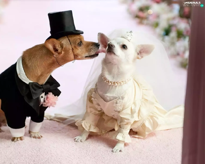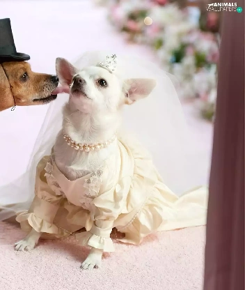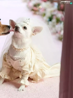 marriage, full dress, veil, puppies