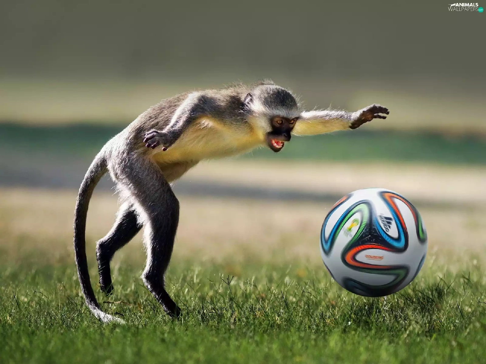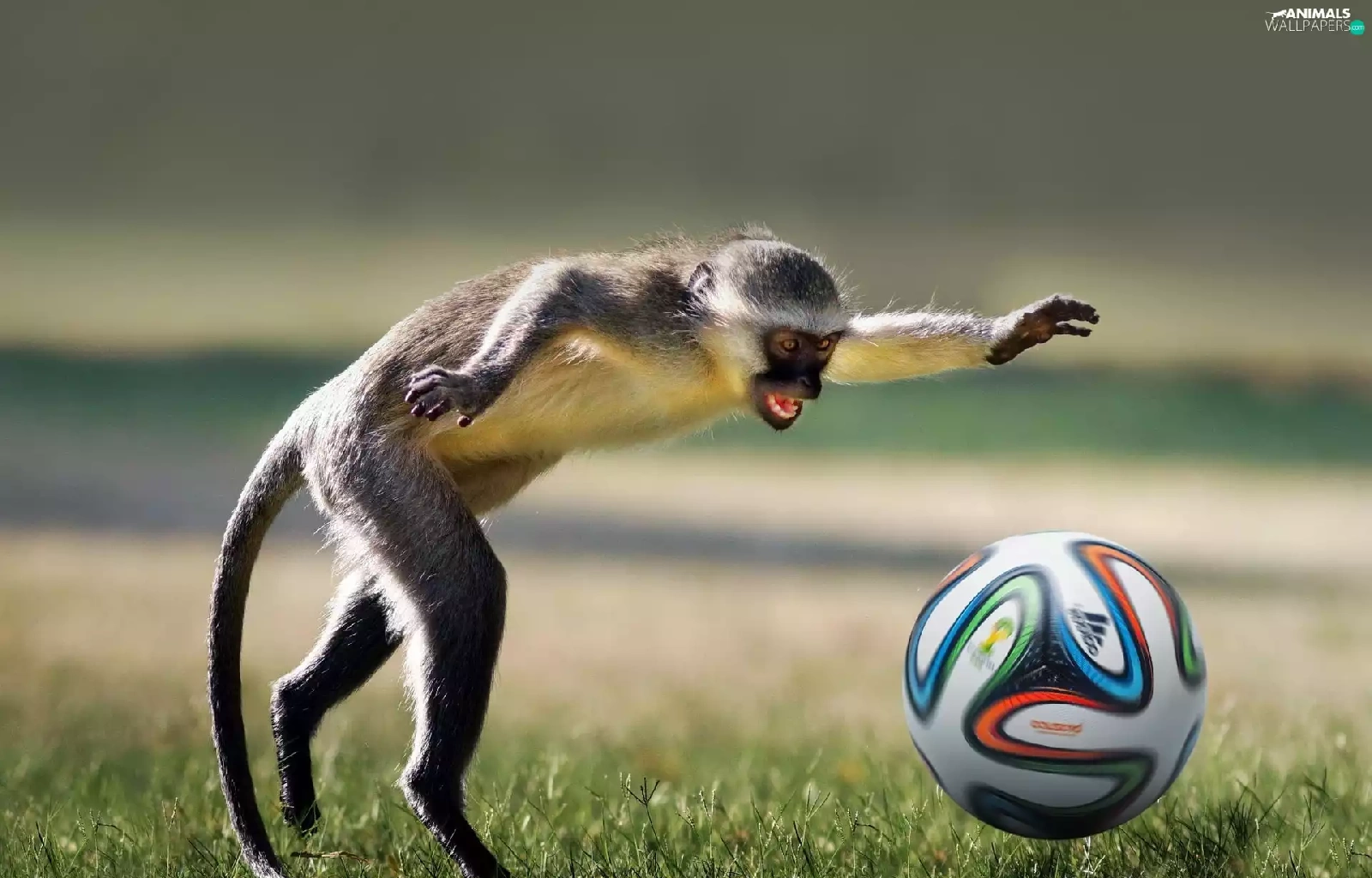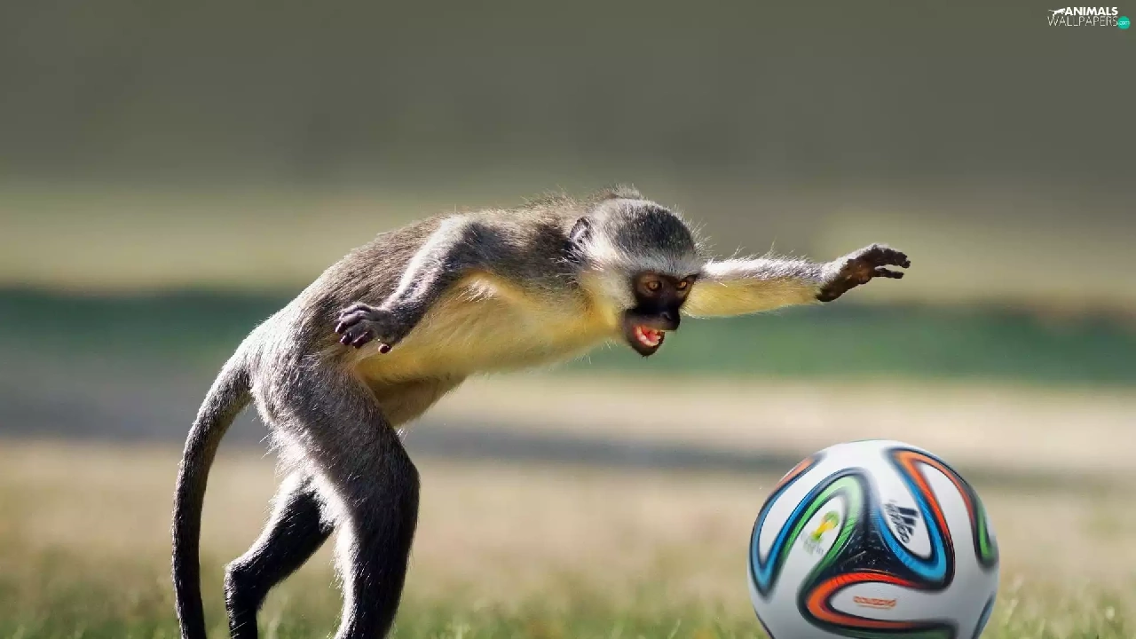 football, Funny, Ball, grass, Monkey