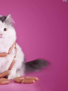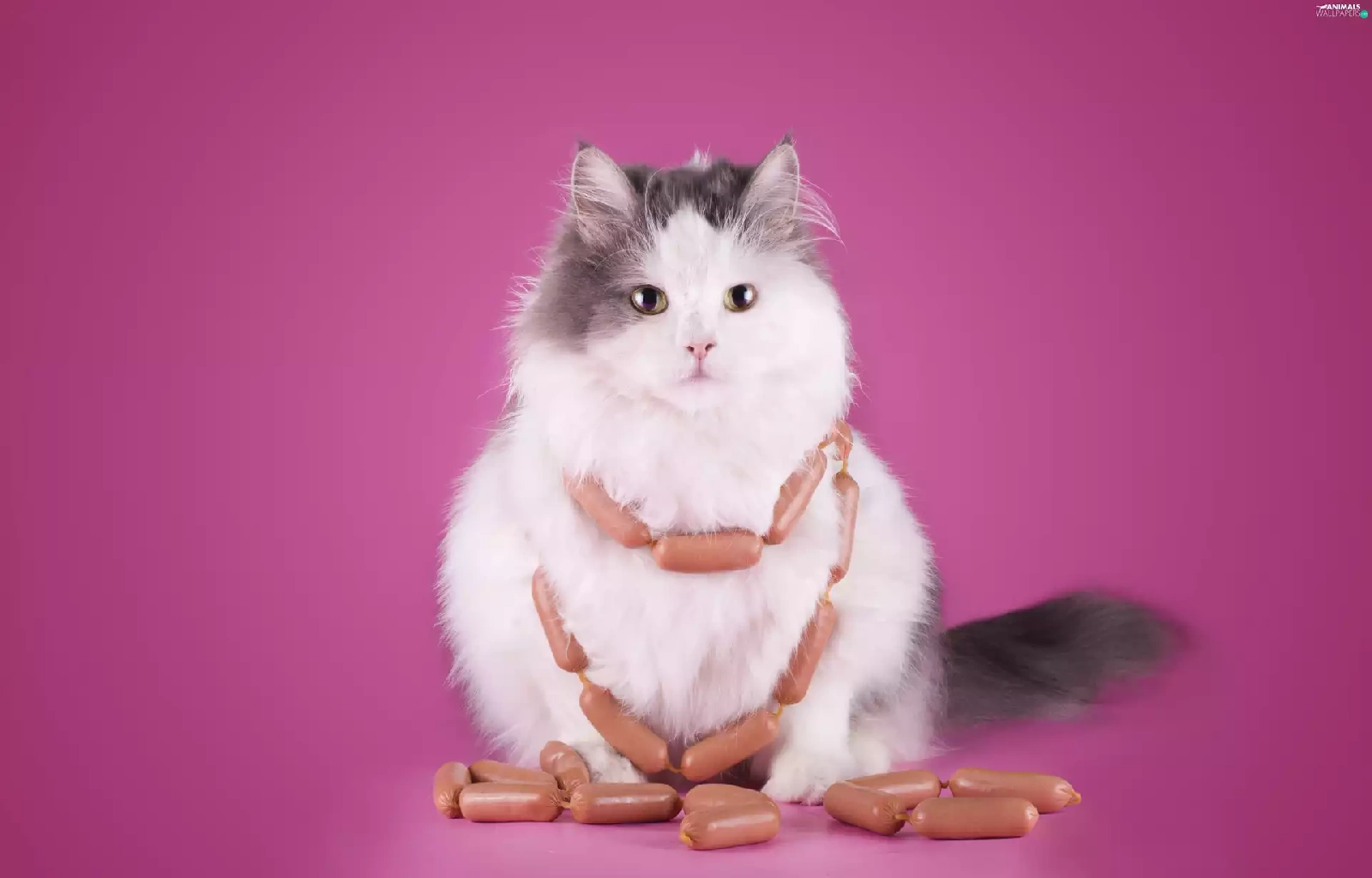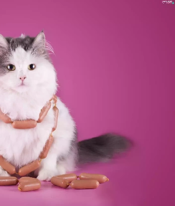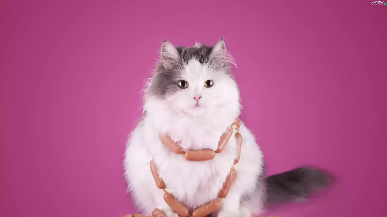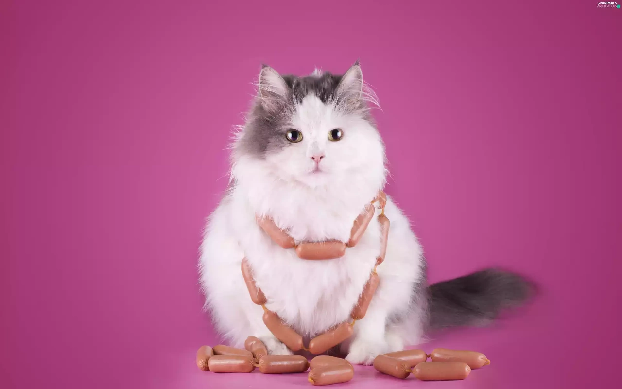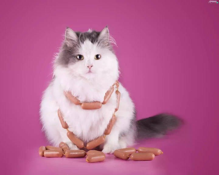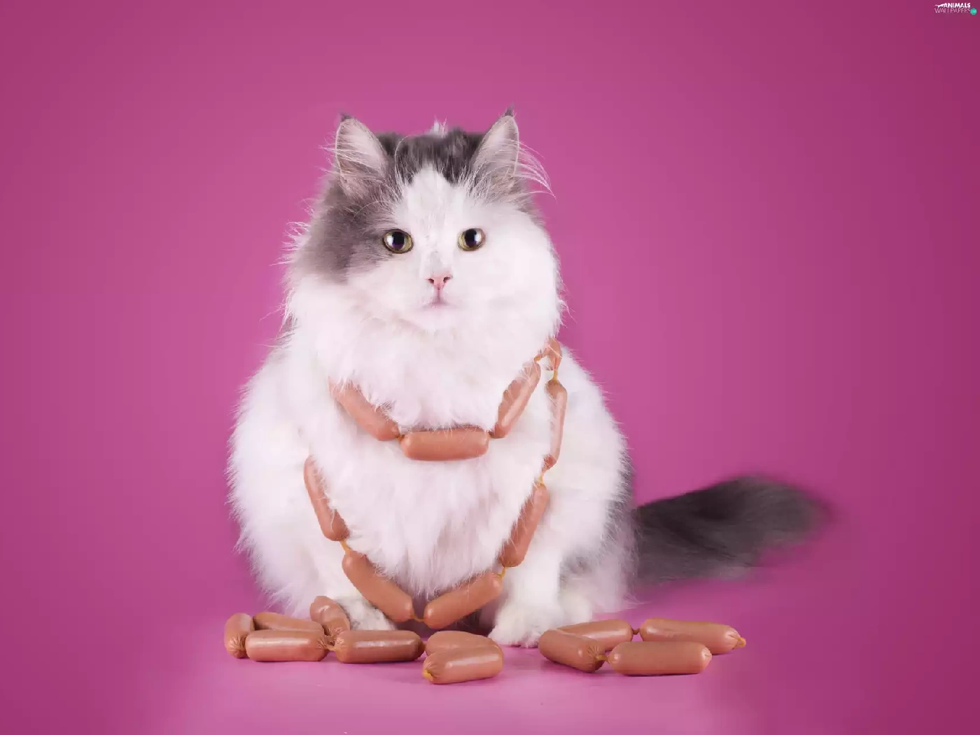 Funny, cat, sausages