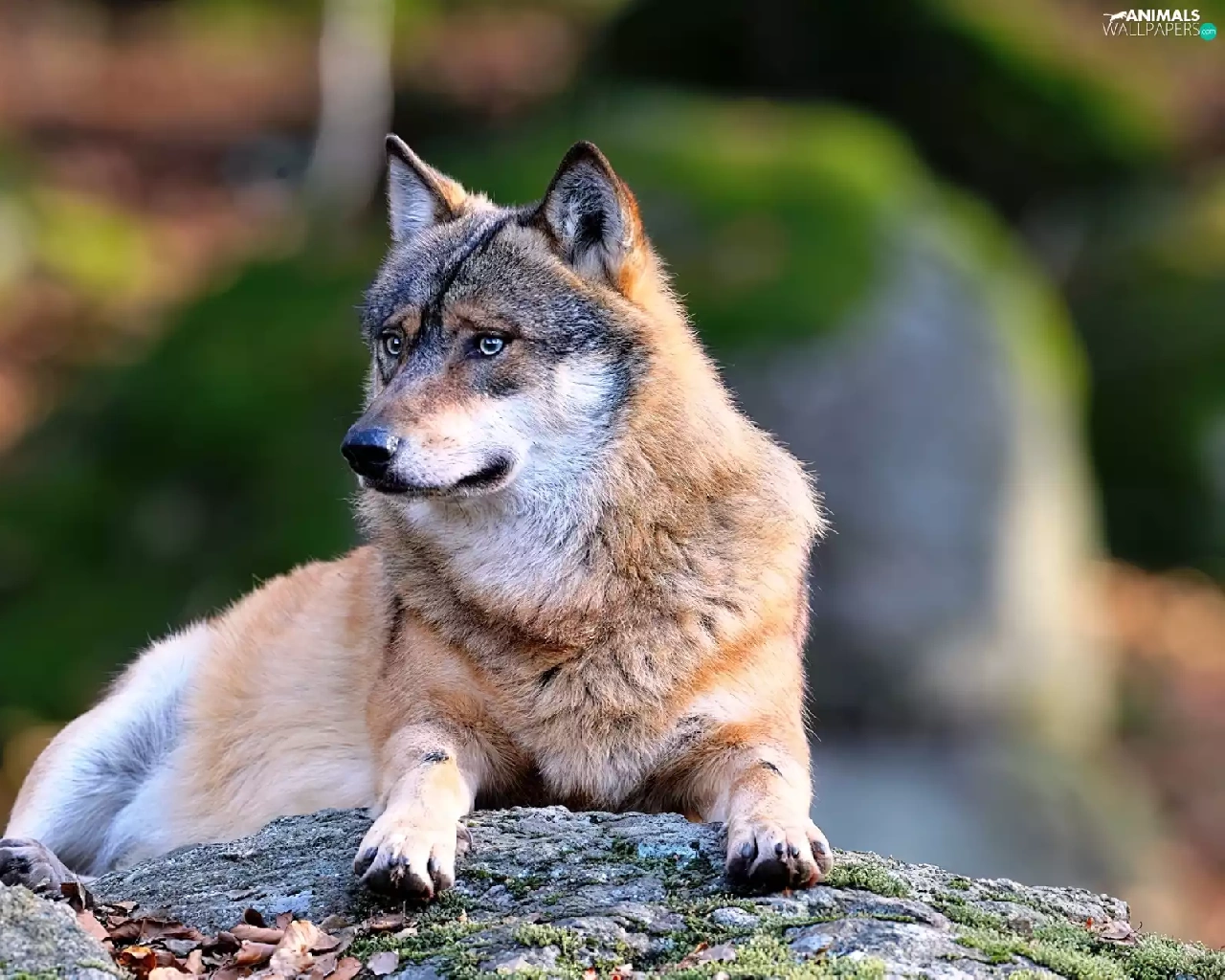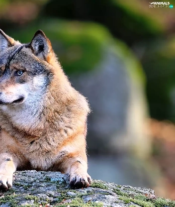 Wolf, resting, Rocks, Fur