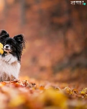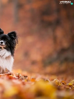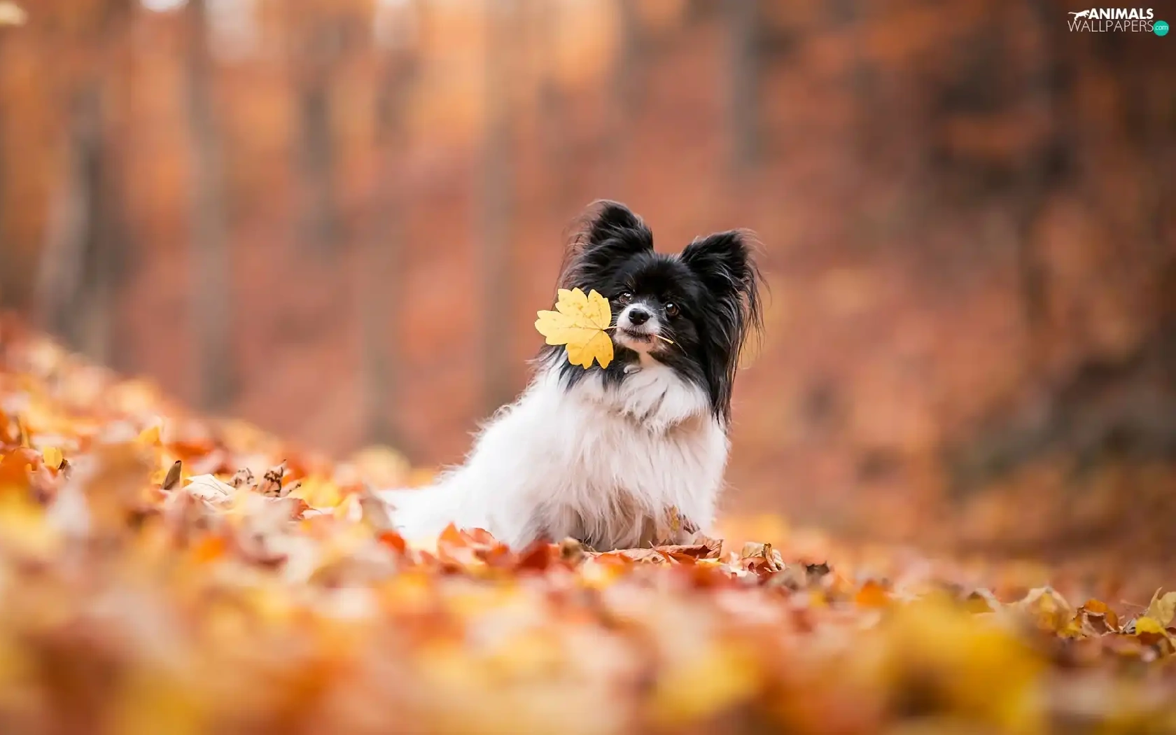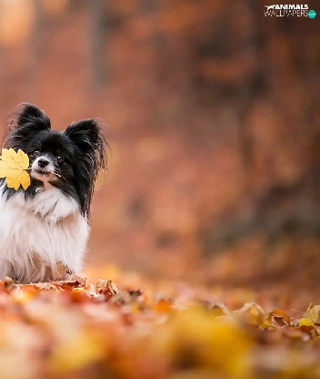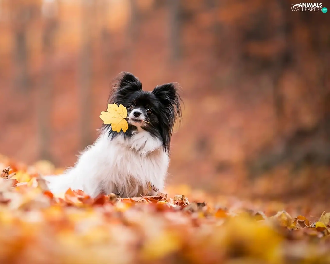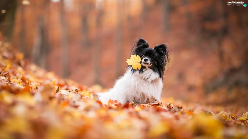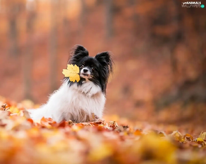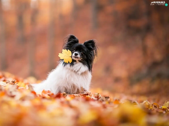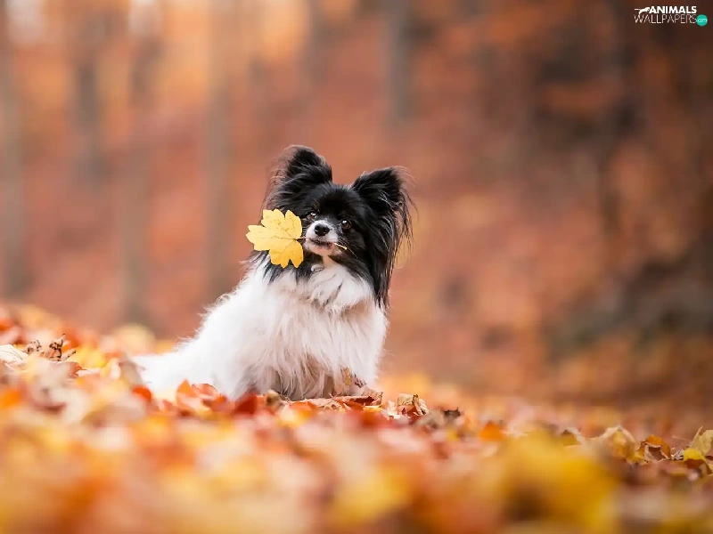 fuzzy, background, Miniature Continental Toy Spaniel Papillon, Leaf, dog
