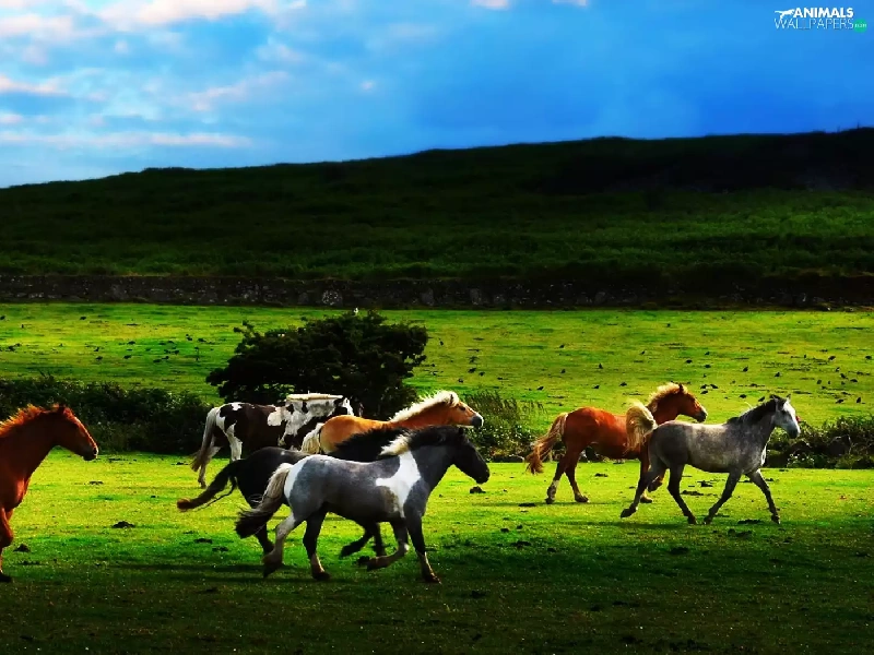 bloodstock, pasture, Hill, gallop