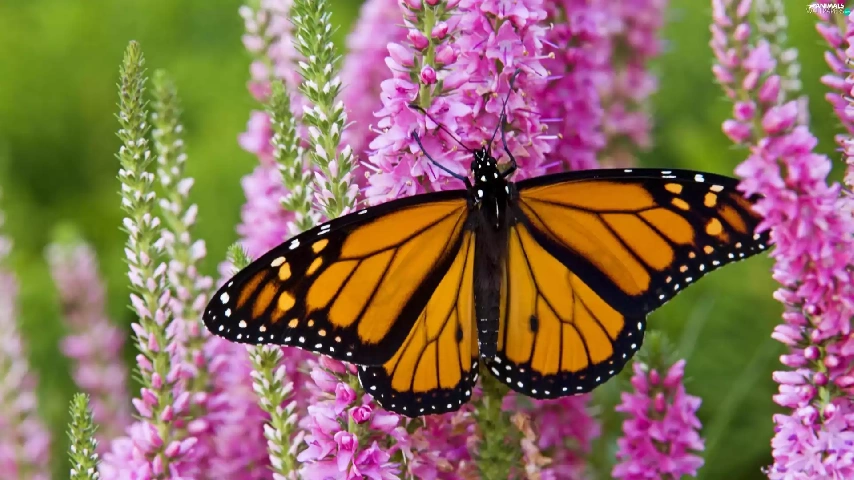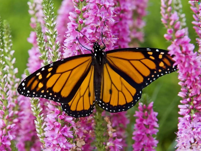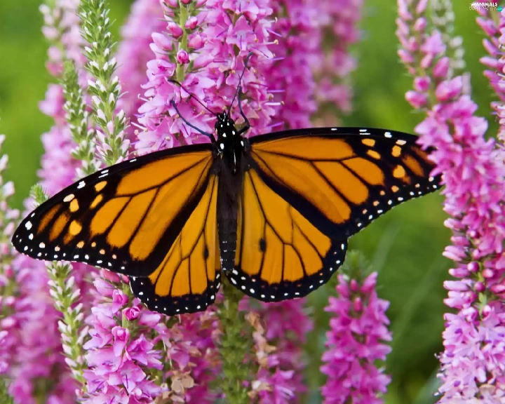Flowers, Garden, butterfly, Monarch, Beatyfull