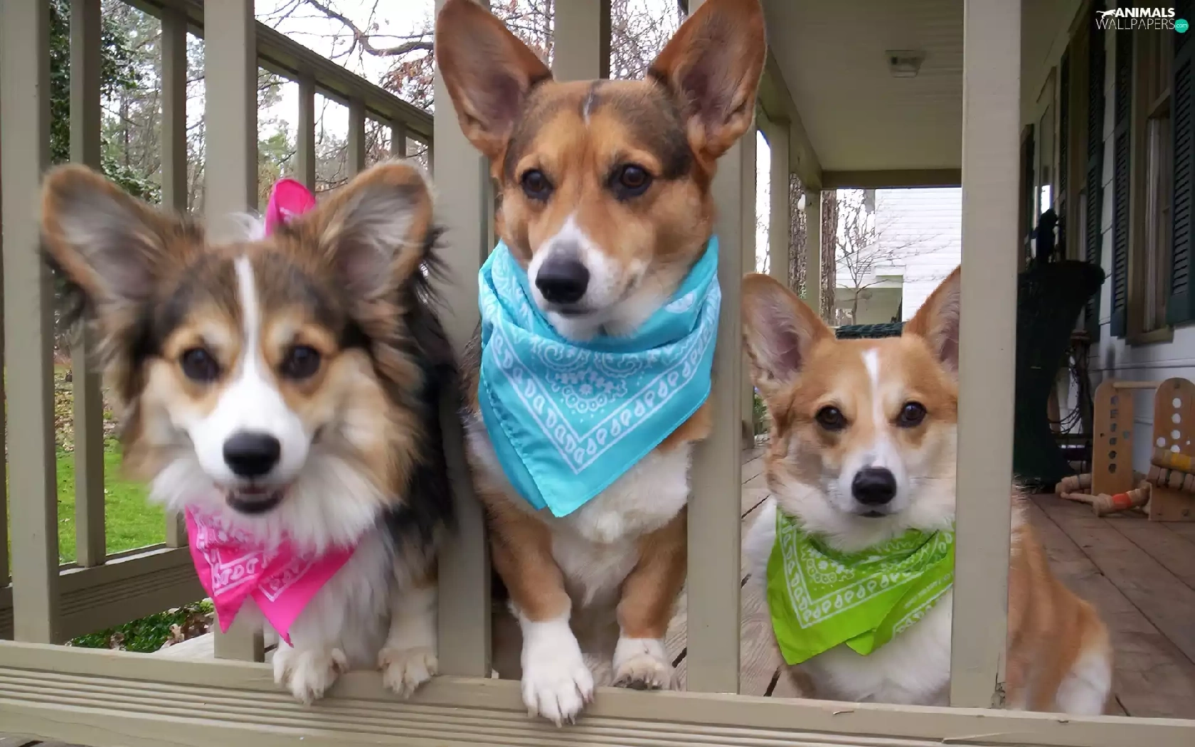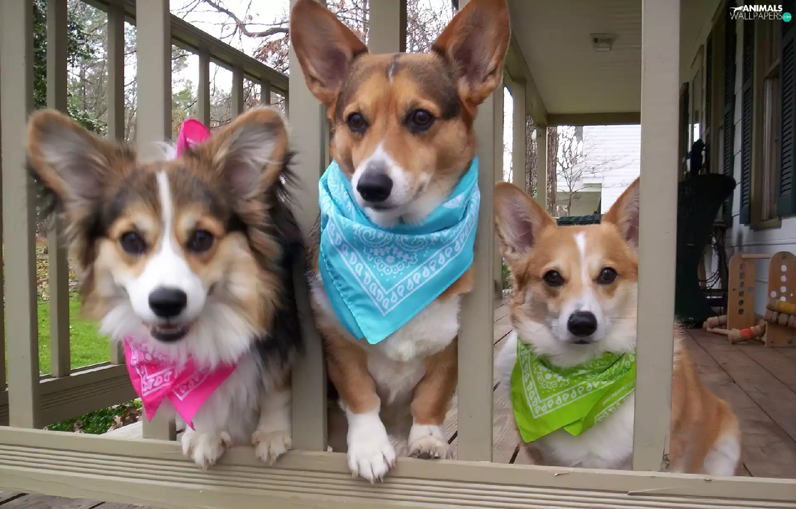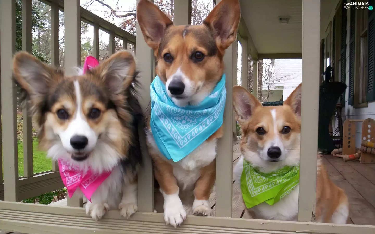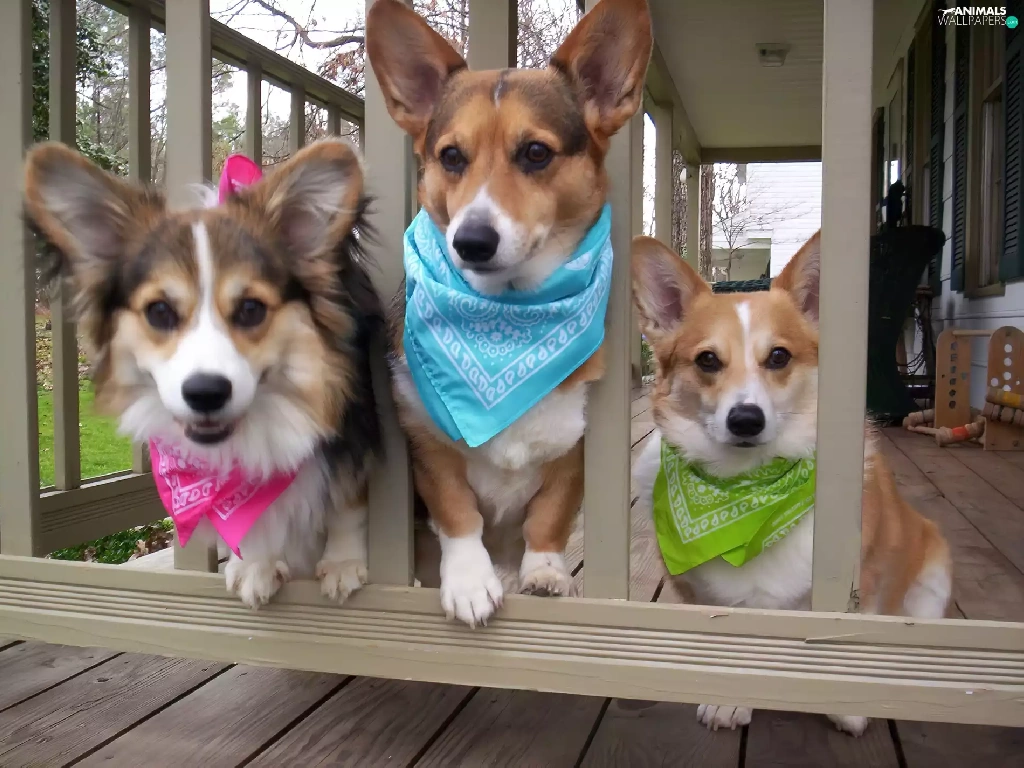 scarves, gate, Dogs, color, Three
