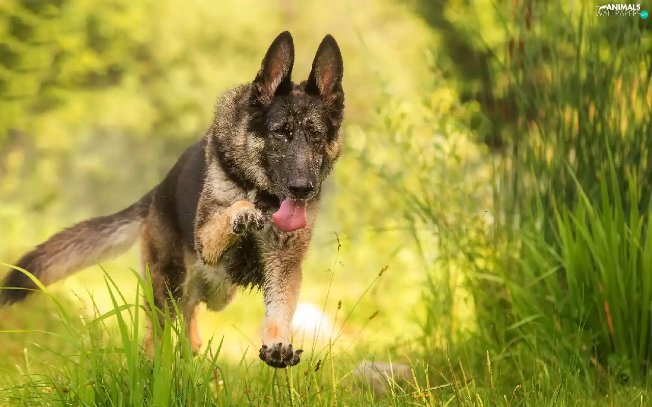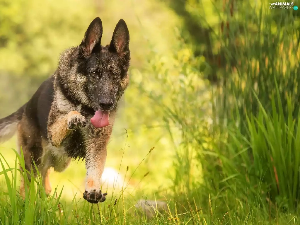 grass, German Shepherd, gear