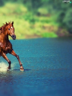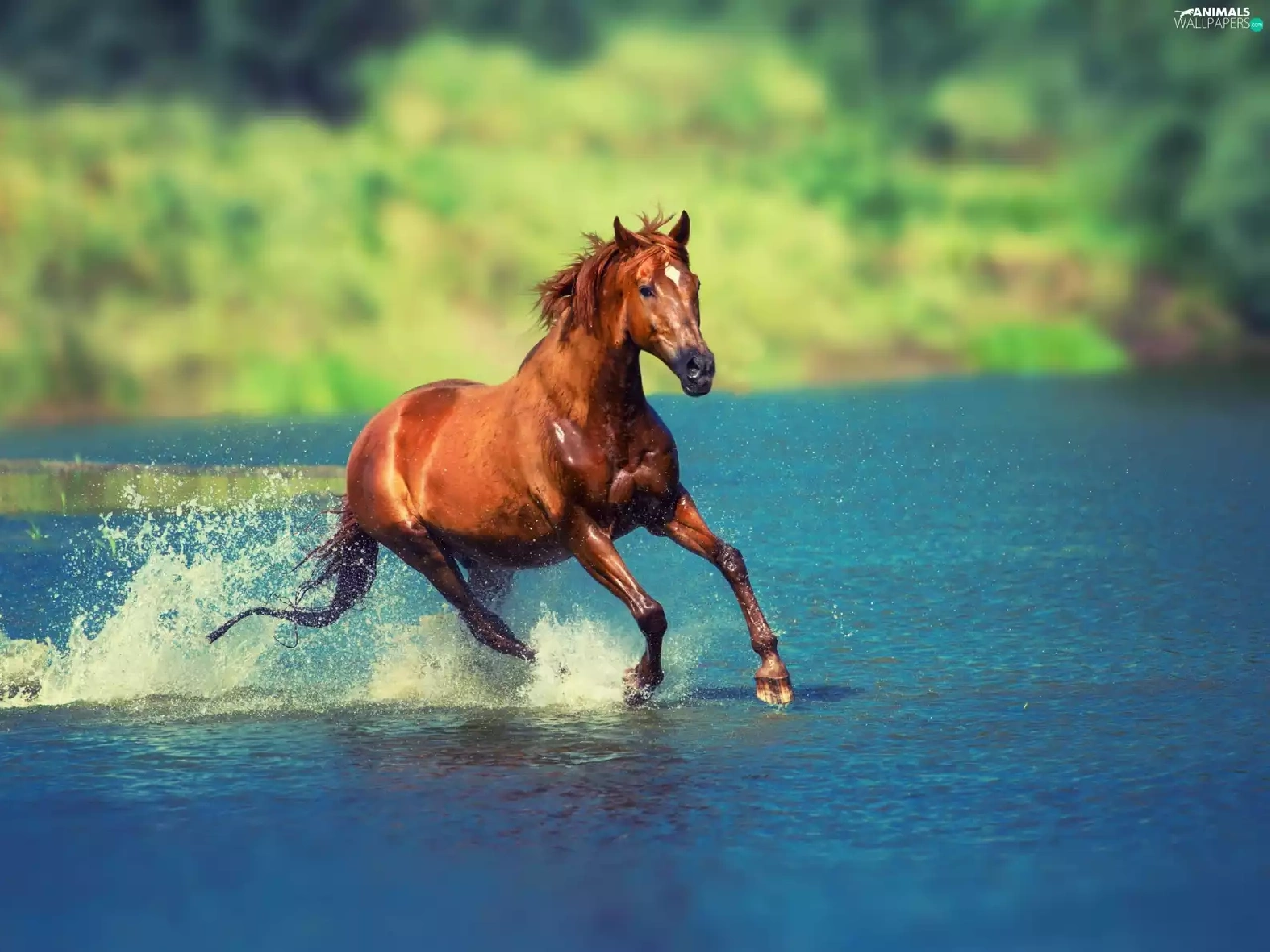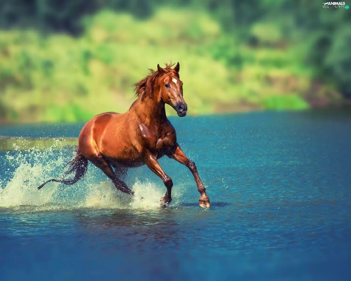 Horse, water, blur, gear