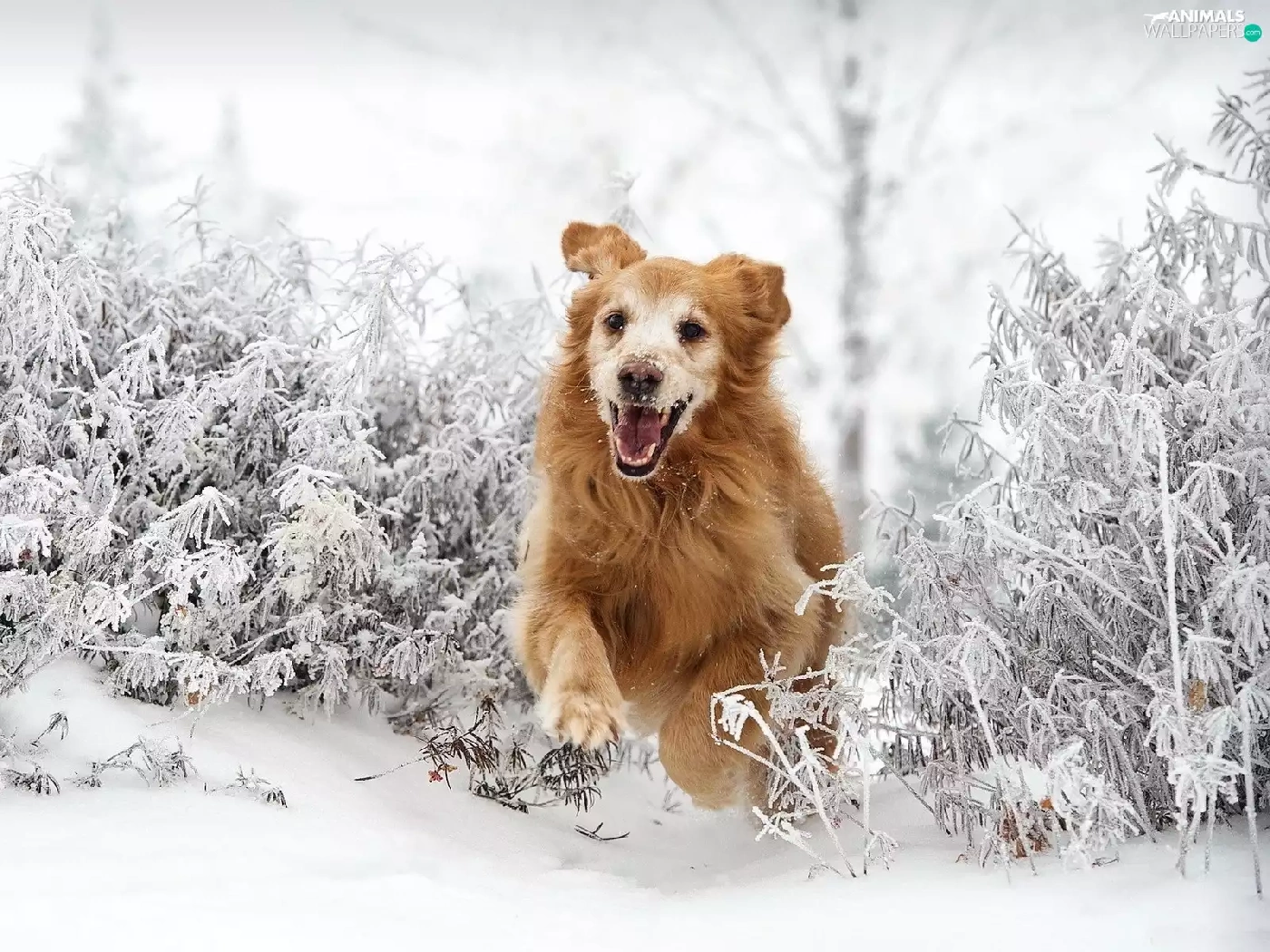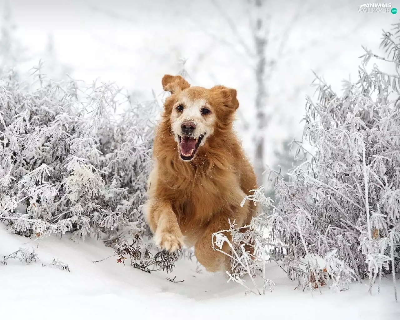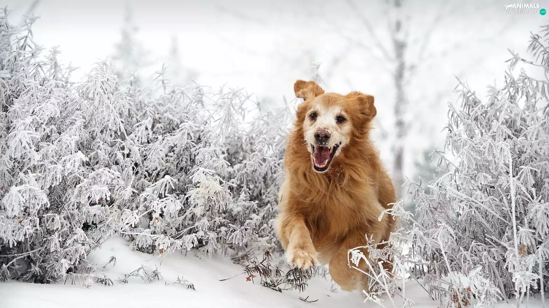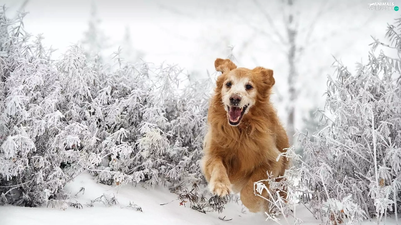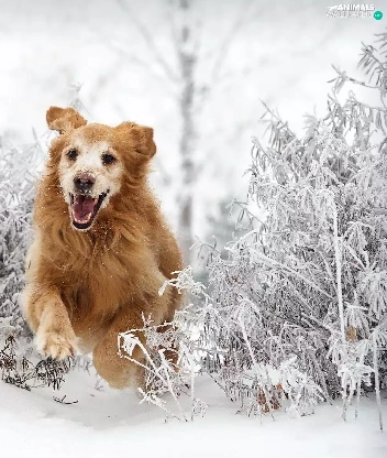 snow, Golden Retriever, gear