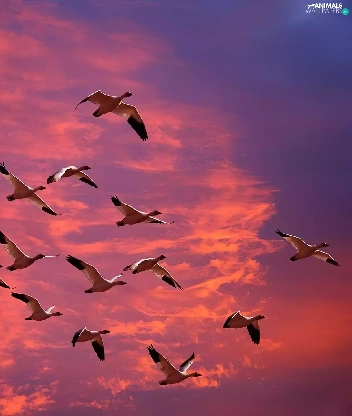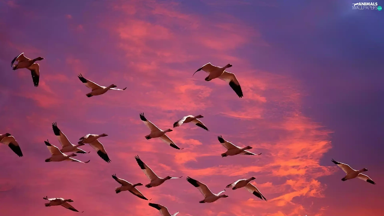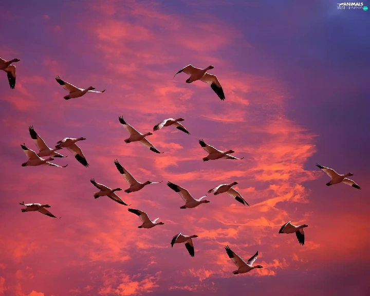 geese, clouds