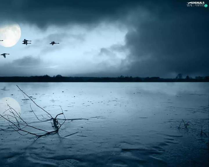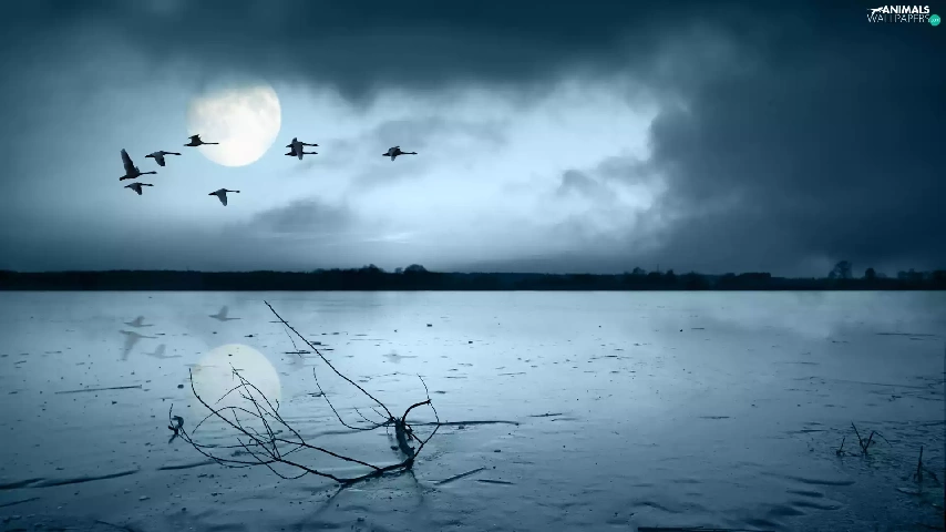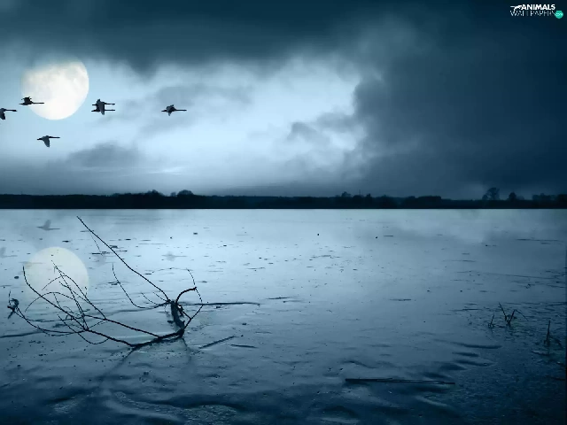 geese, frozen, lake