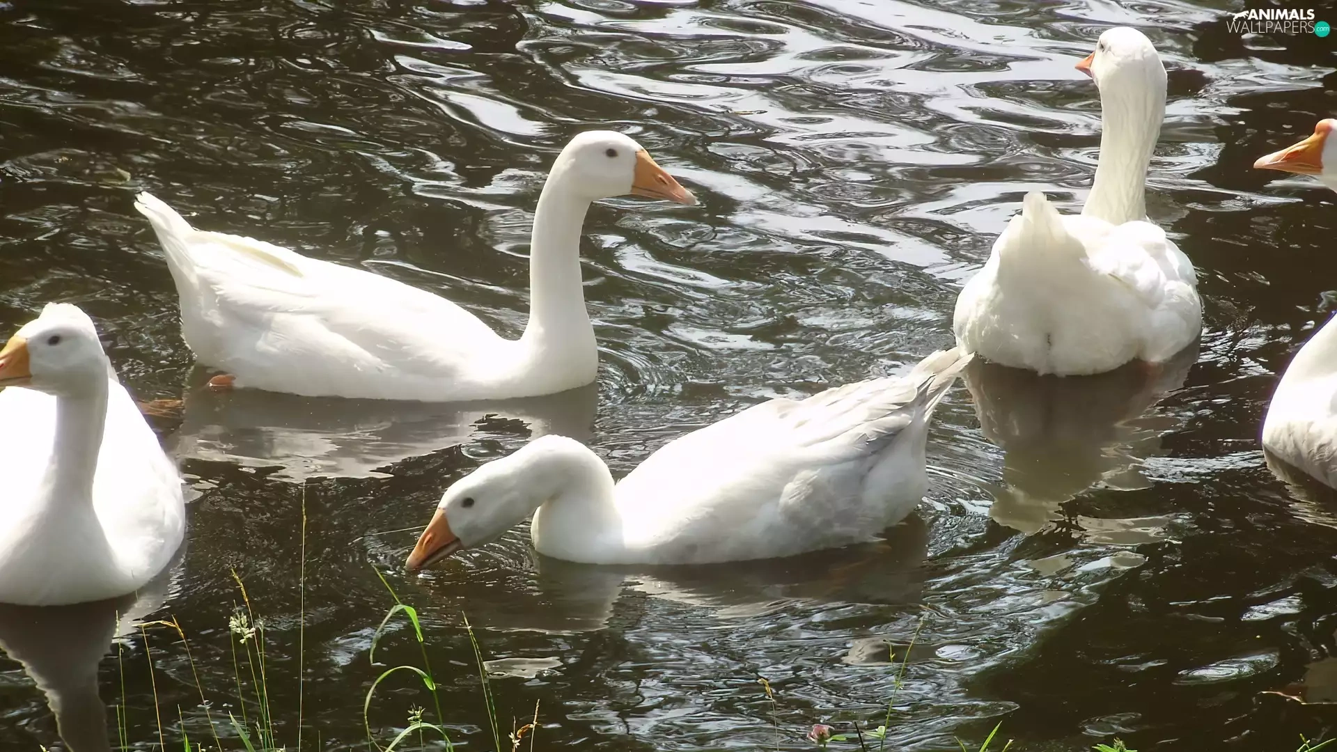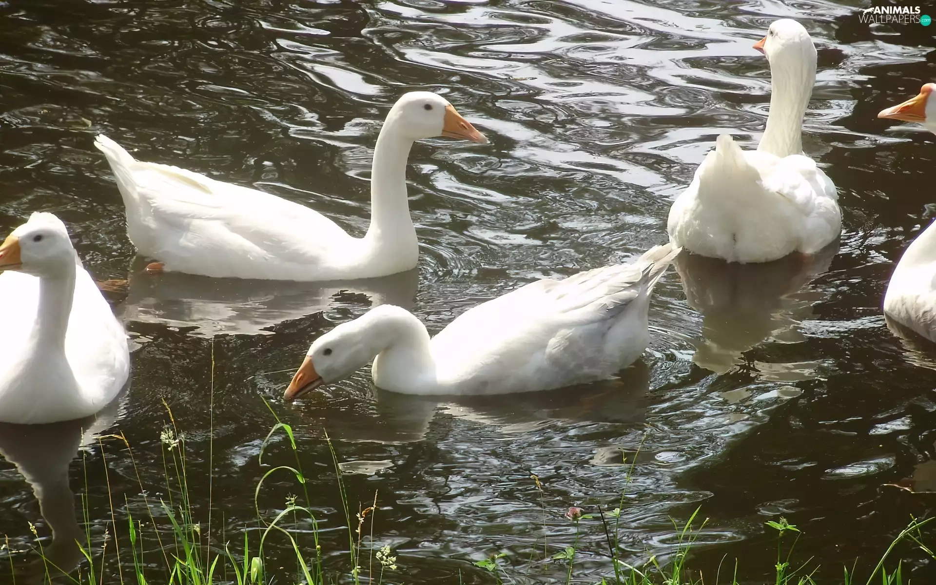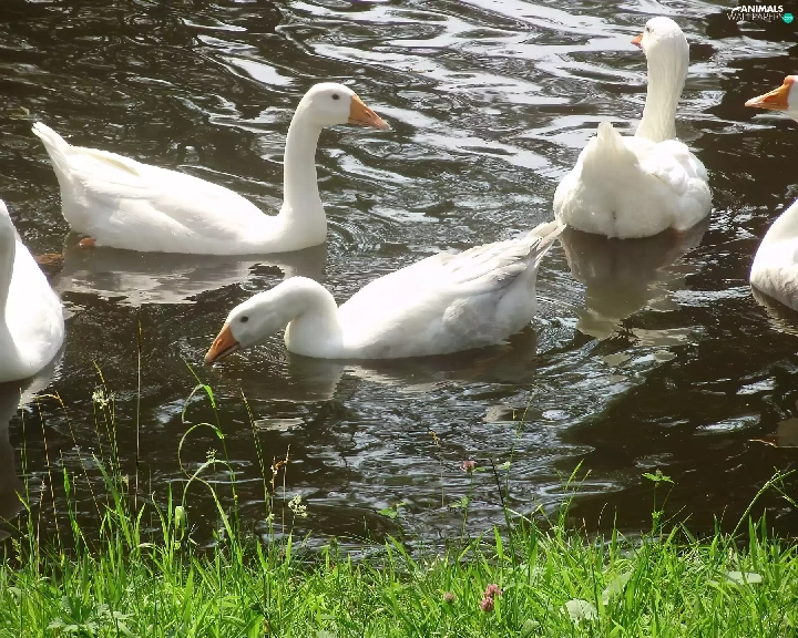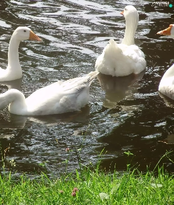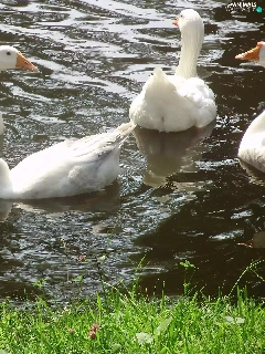 Pond - car, White, geese