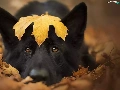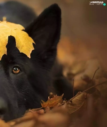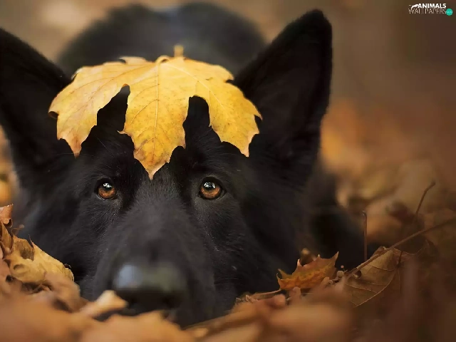 leaf, dog, Black German Shepherd Dog