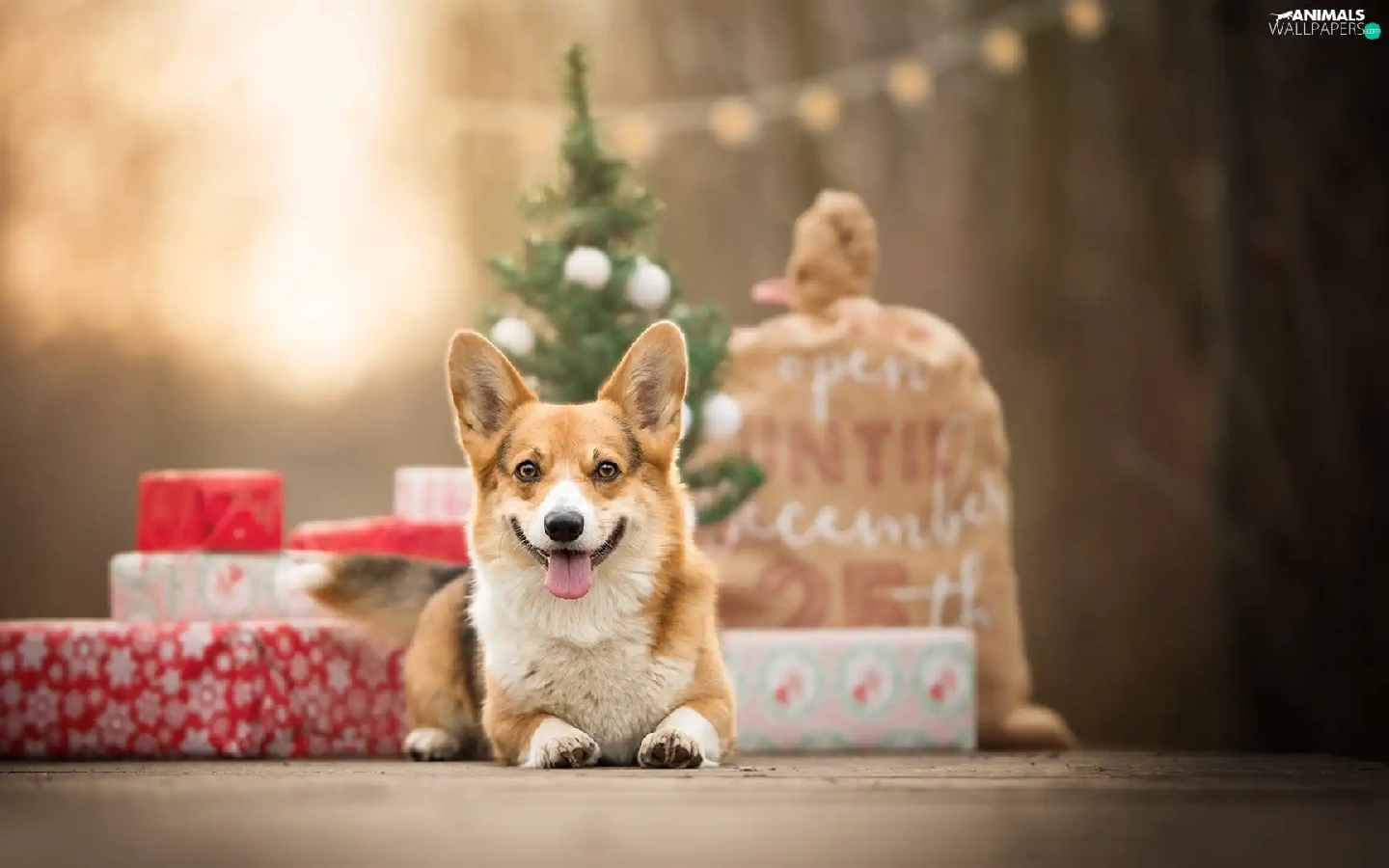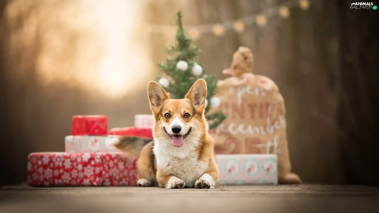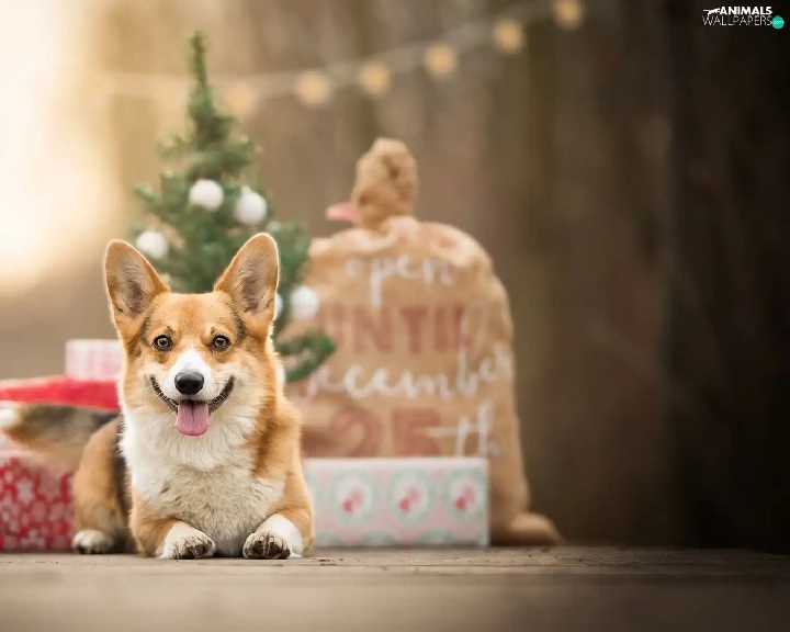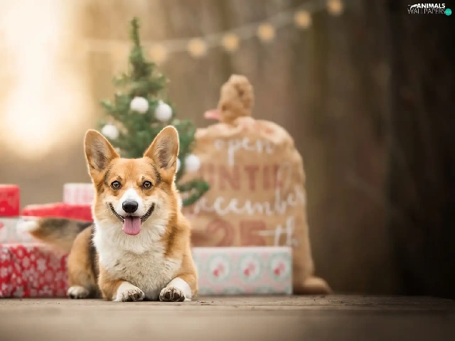 dog, Christmas, gifts, Welsh corgi pembroke