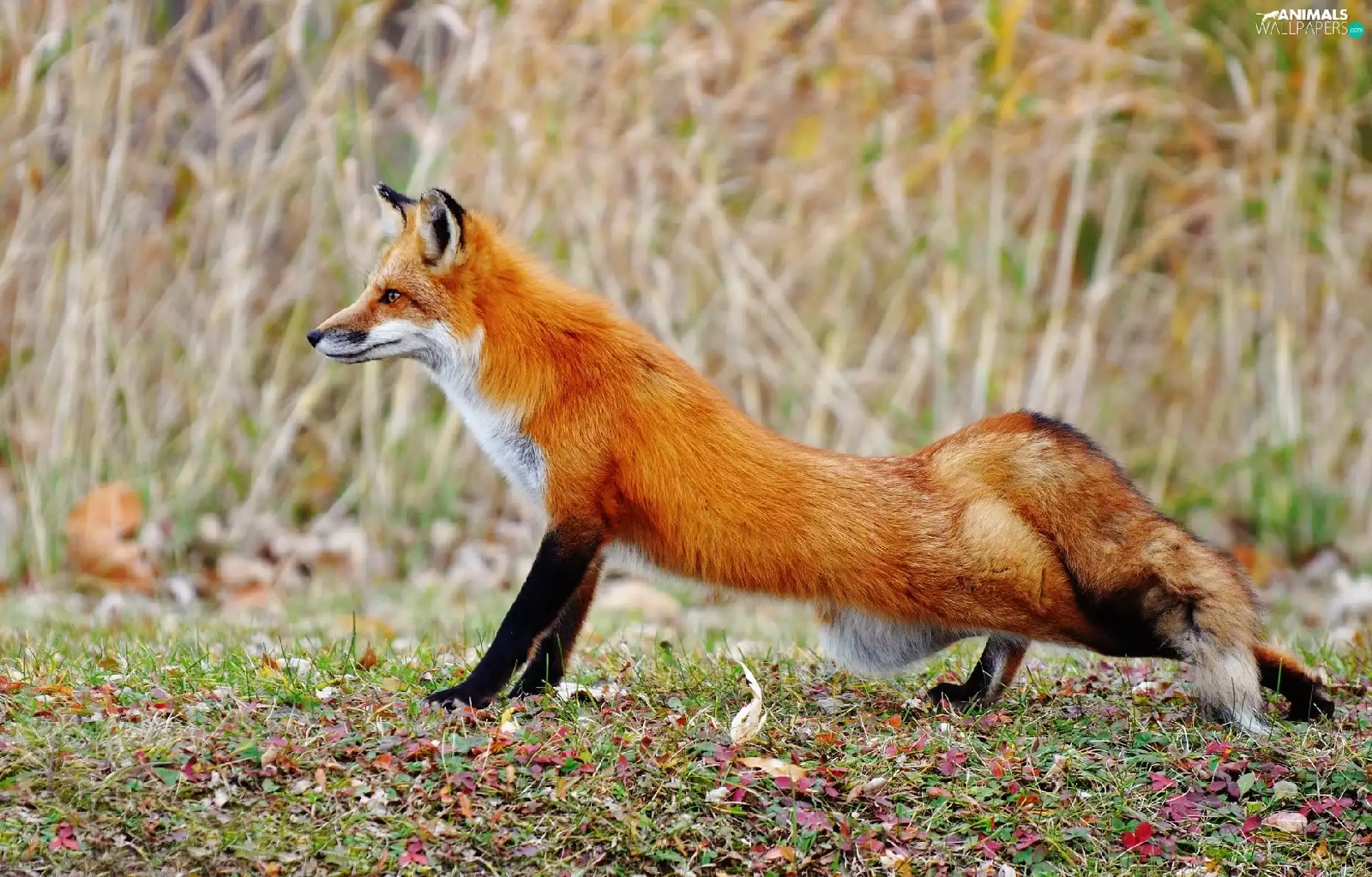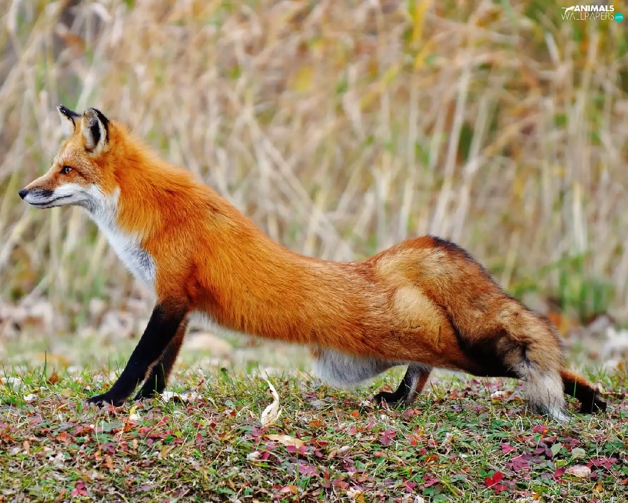 autumn, Fox, grass, ginger