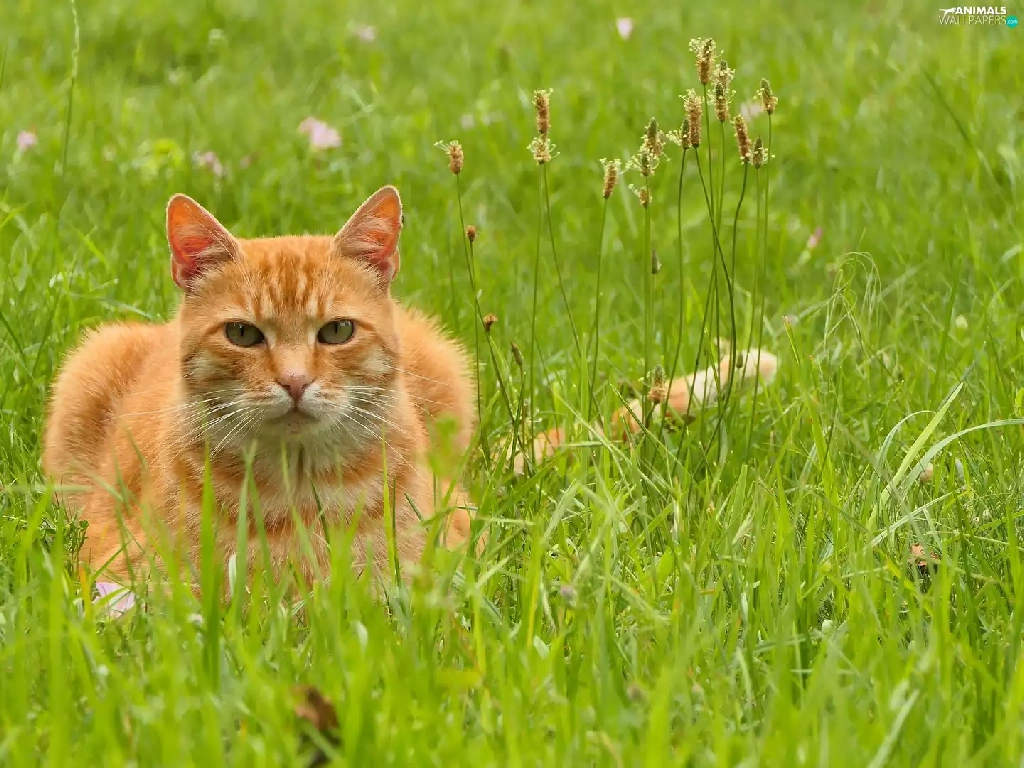 ginger, grass, cat