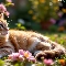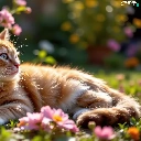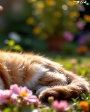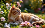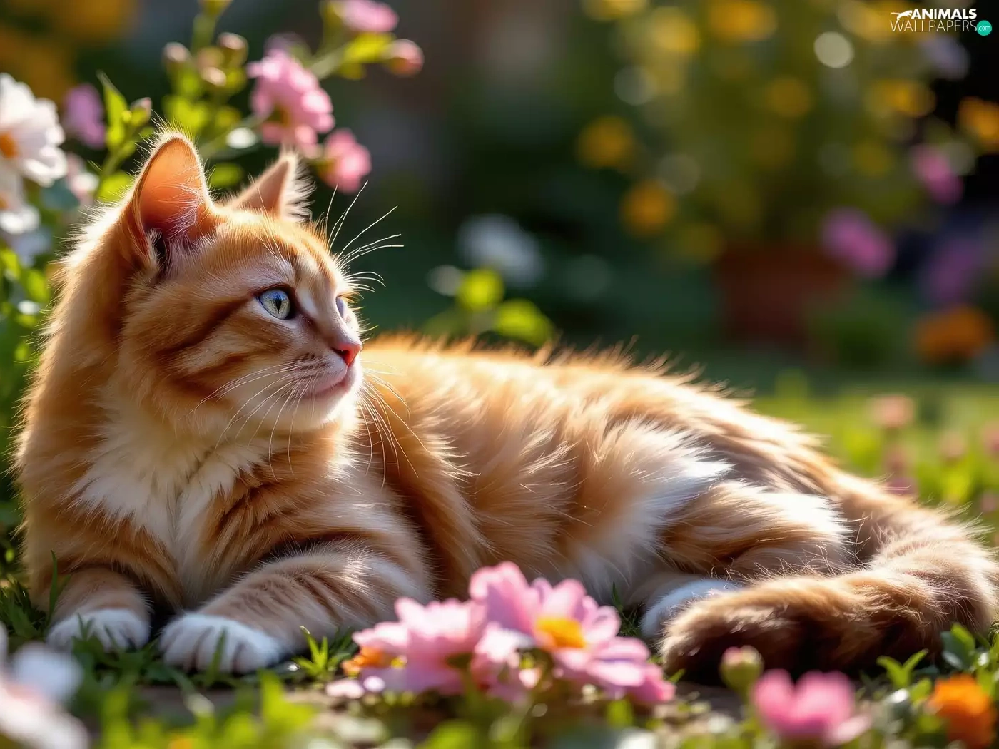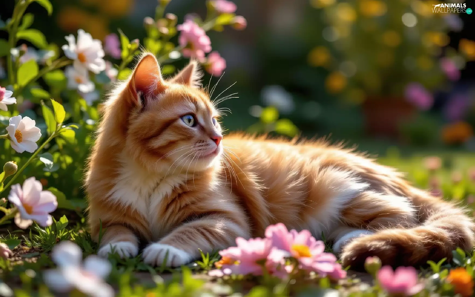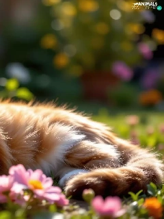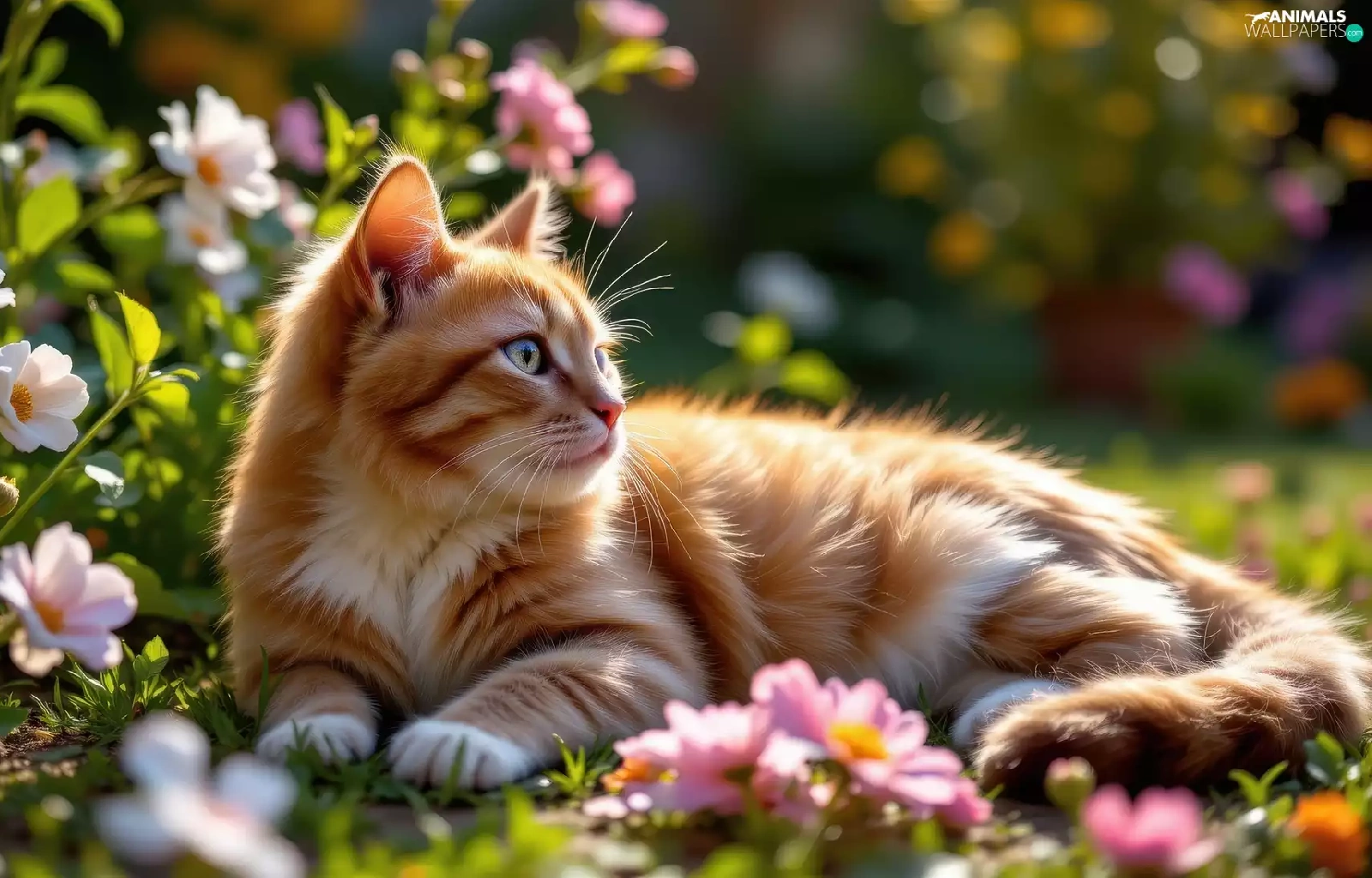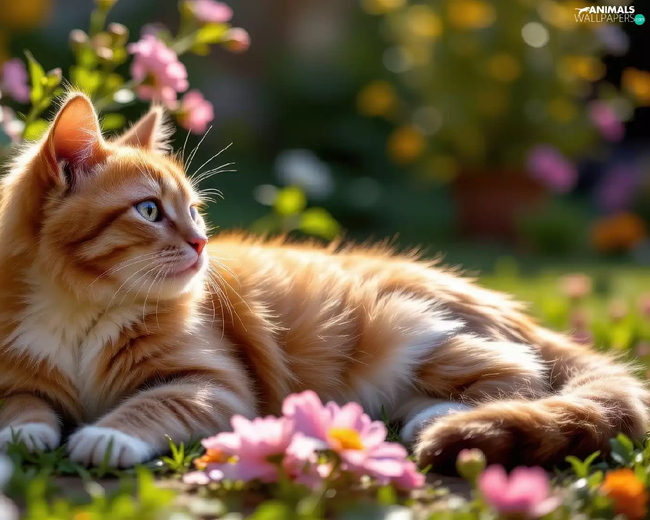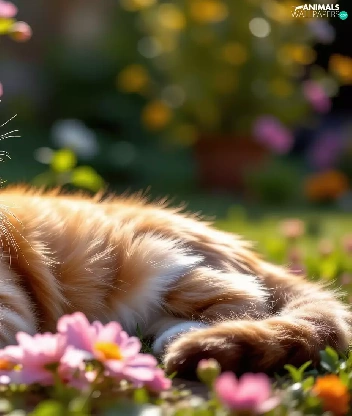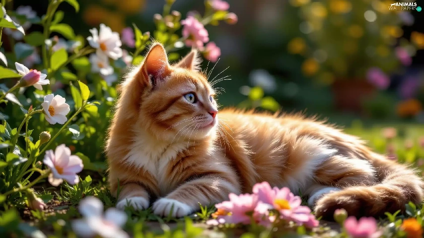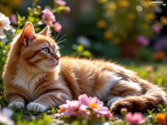 Flowers, The look, ginger, lying, cat