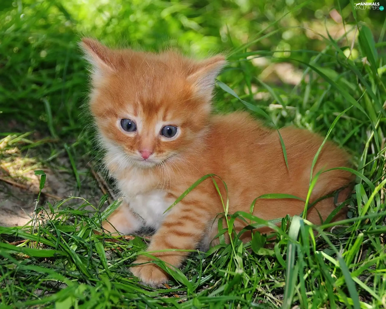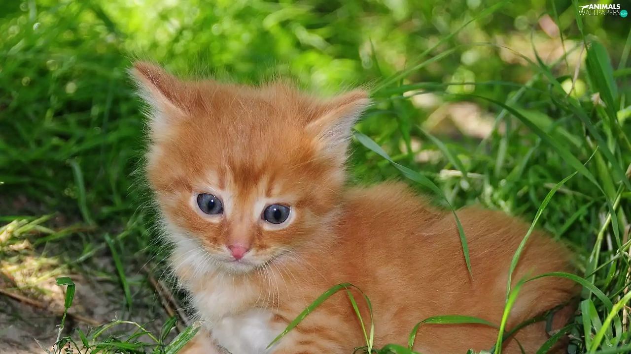 small, kitten, grass, ginger
