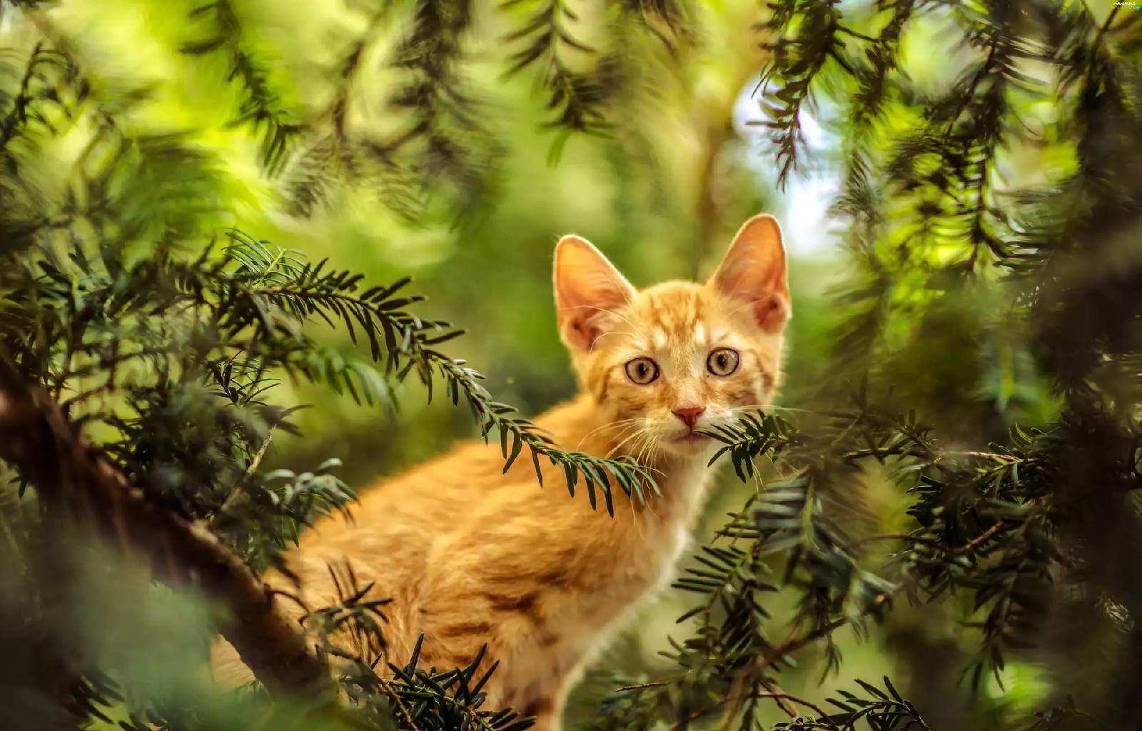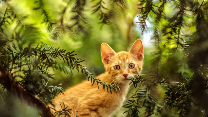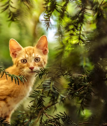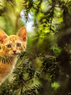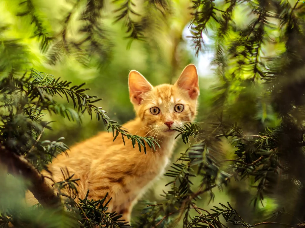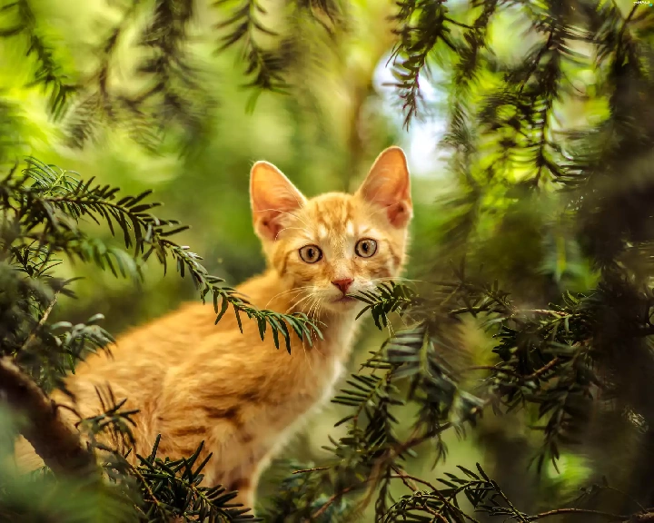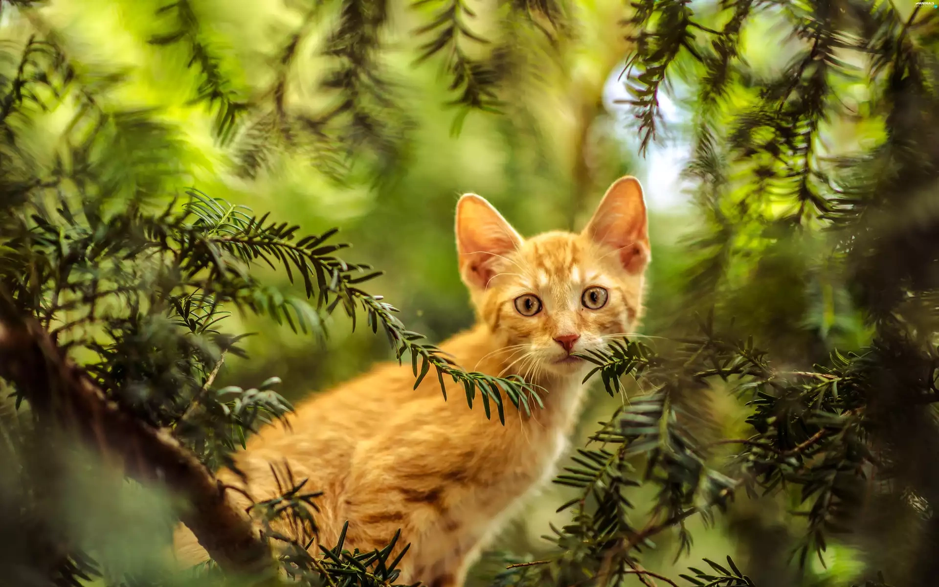 small, kitten, trees, ginger