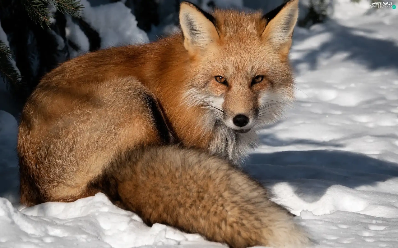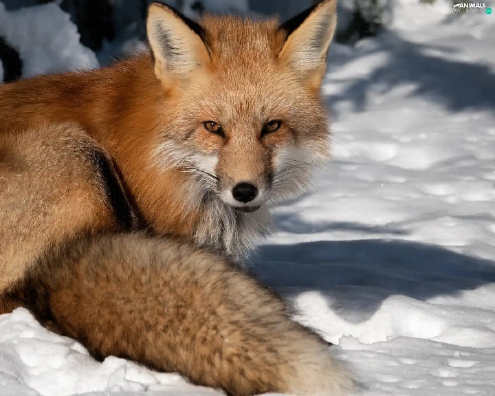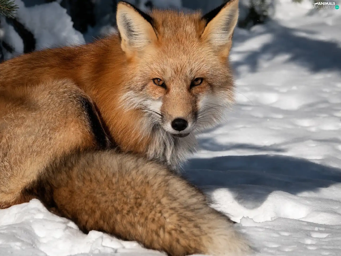winter, Fox, snow, ginger