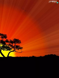 acacia, giraffe, sun, savanna, west