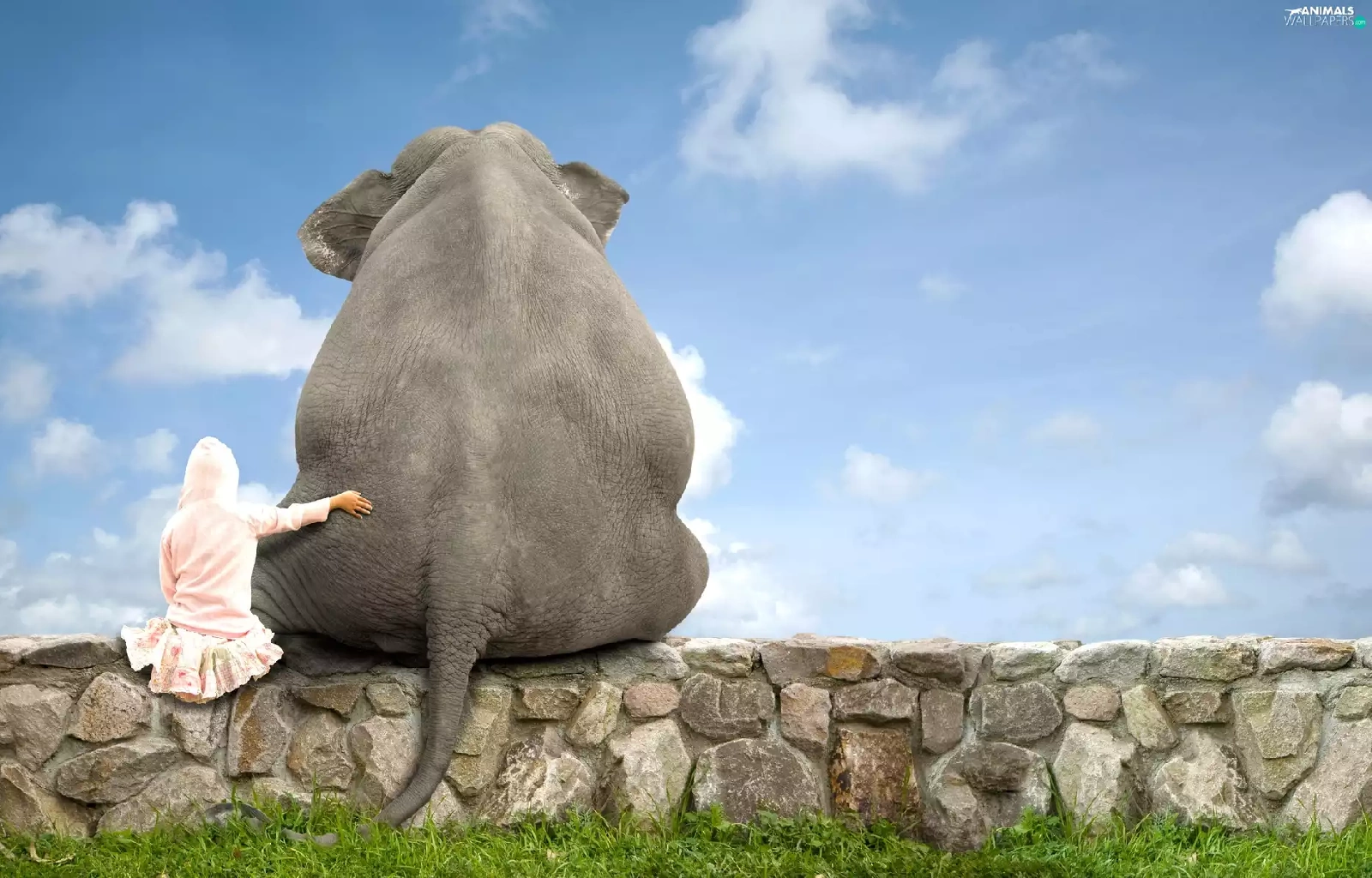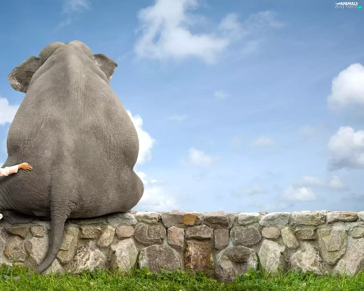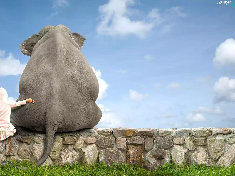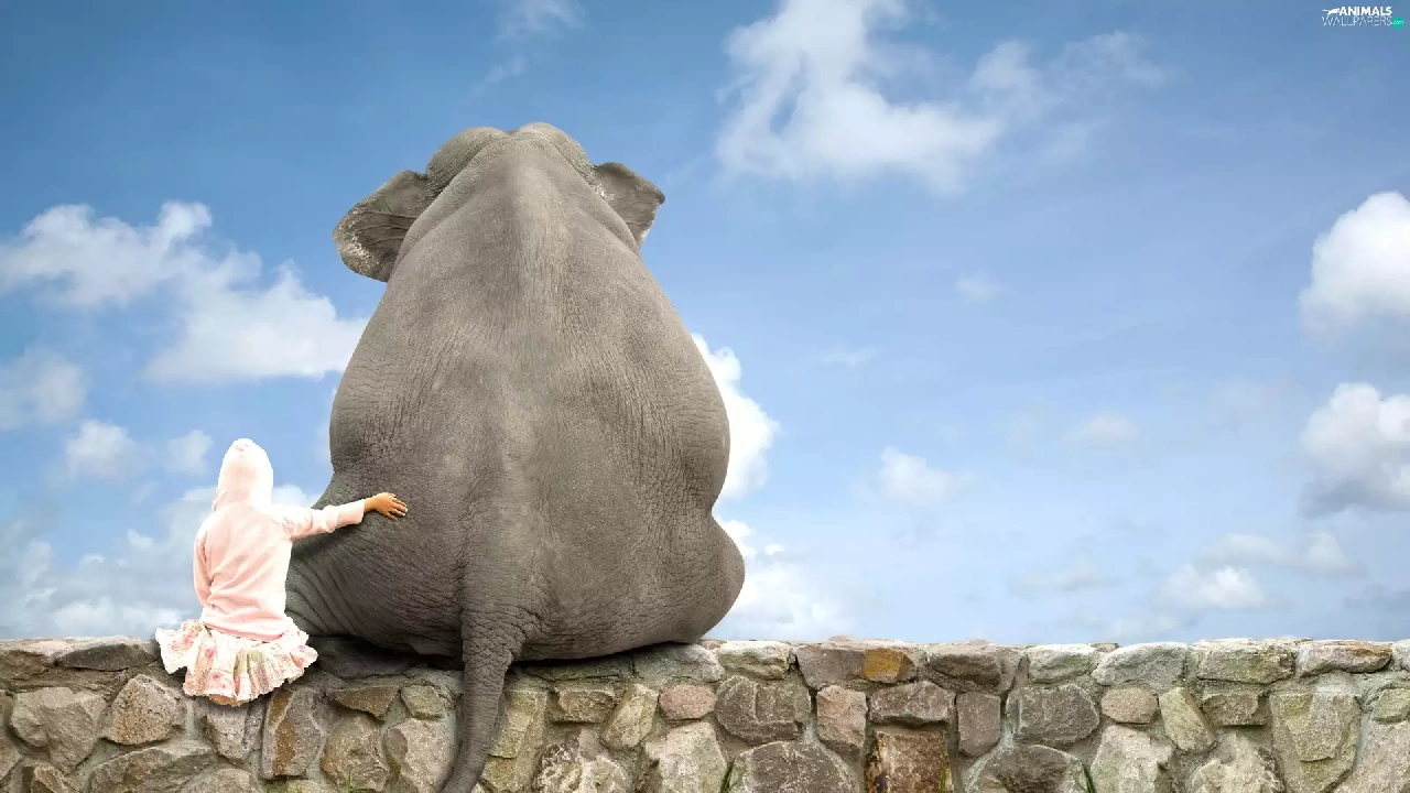 girl, Elephant, ledge