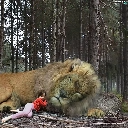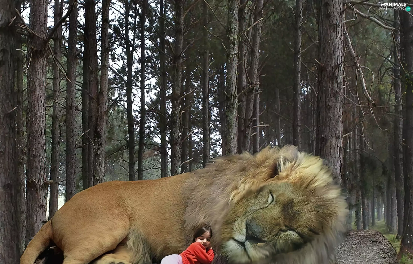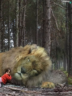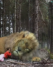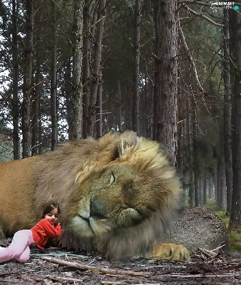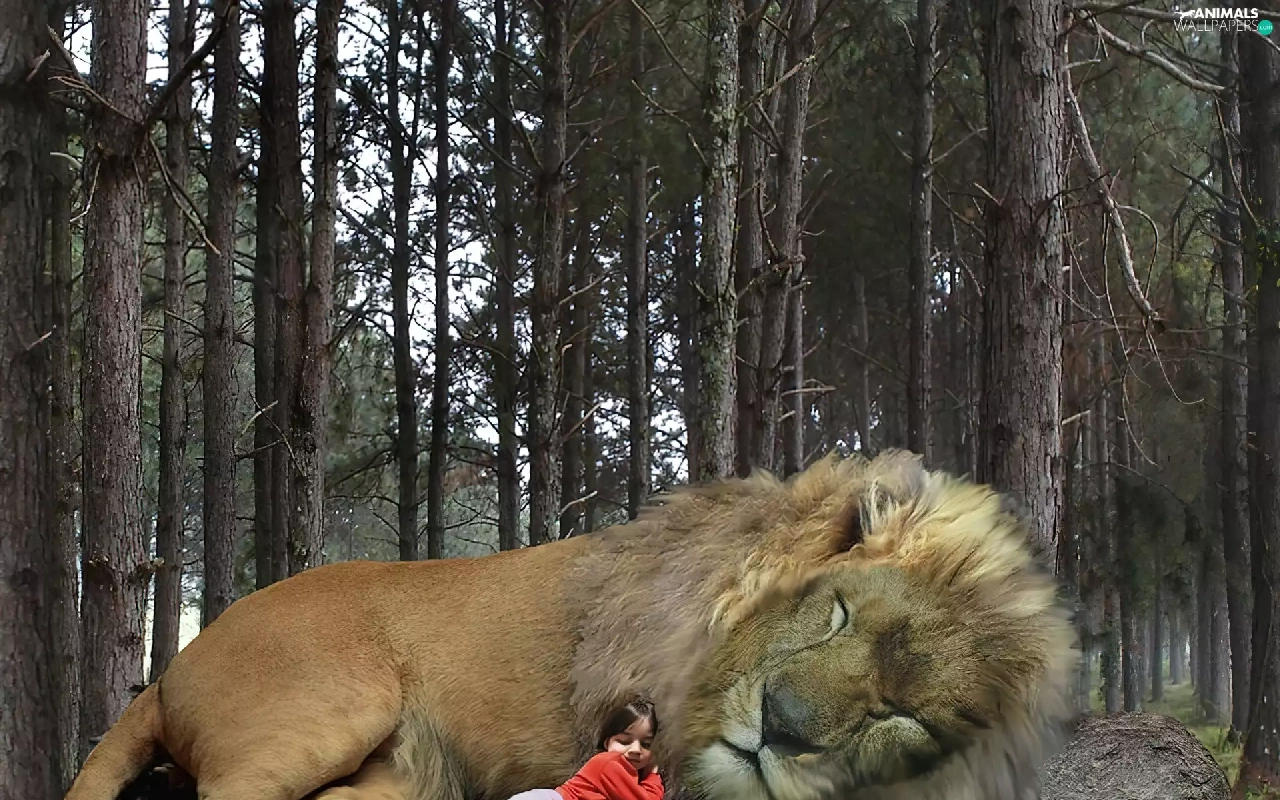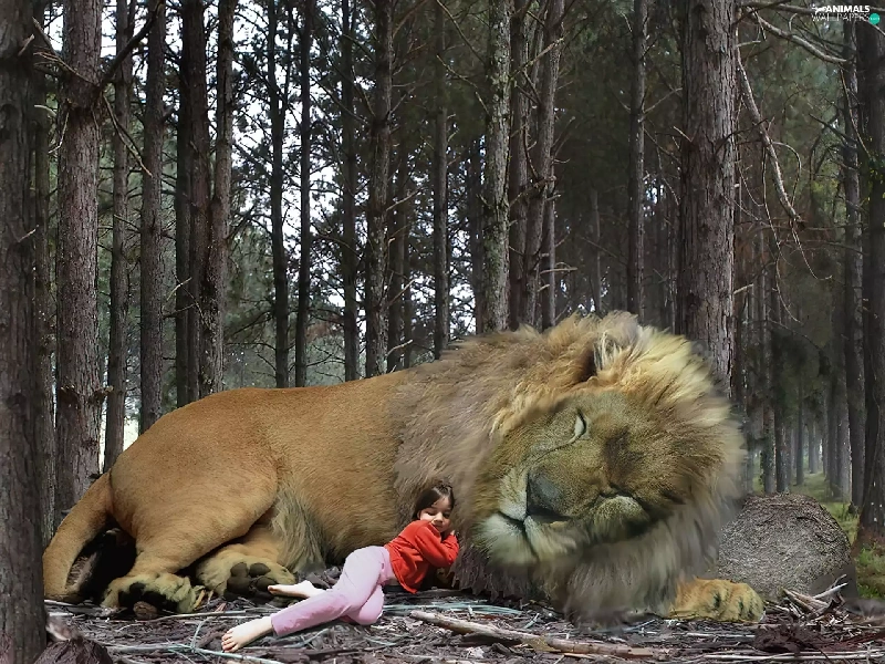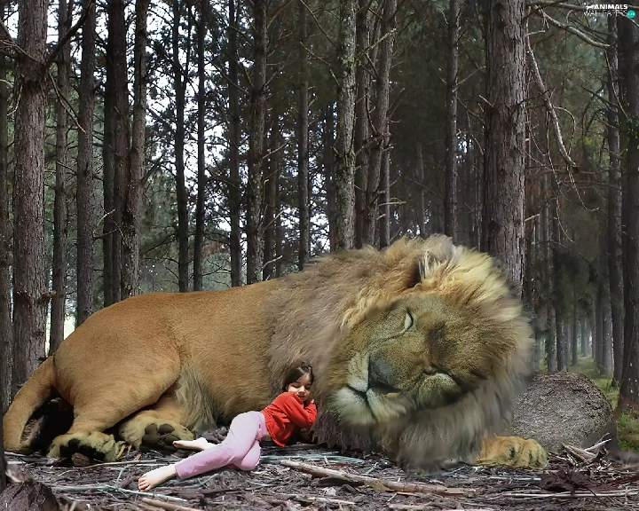 girl, sleepy, Lion