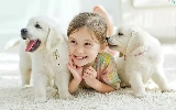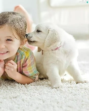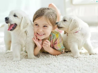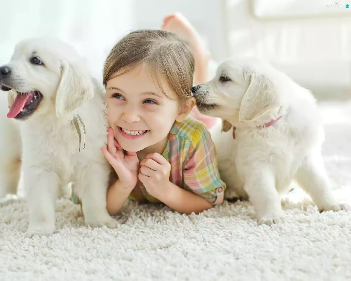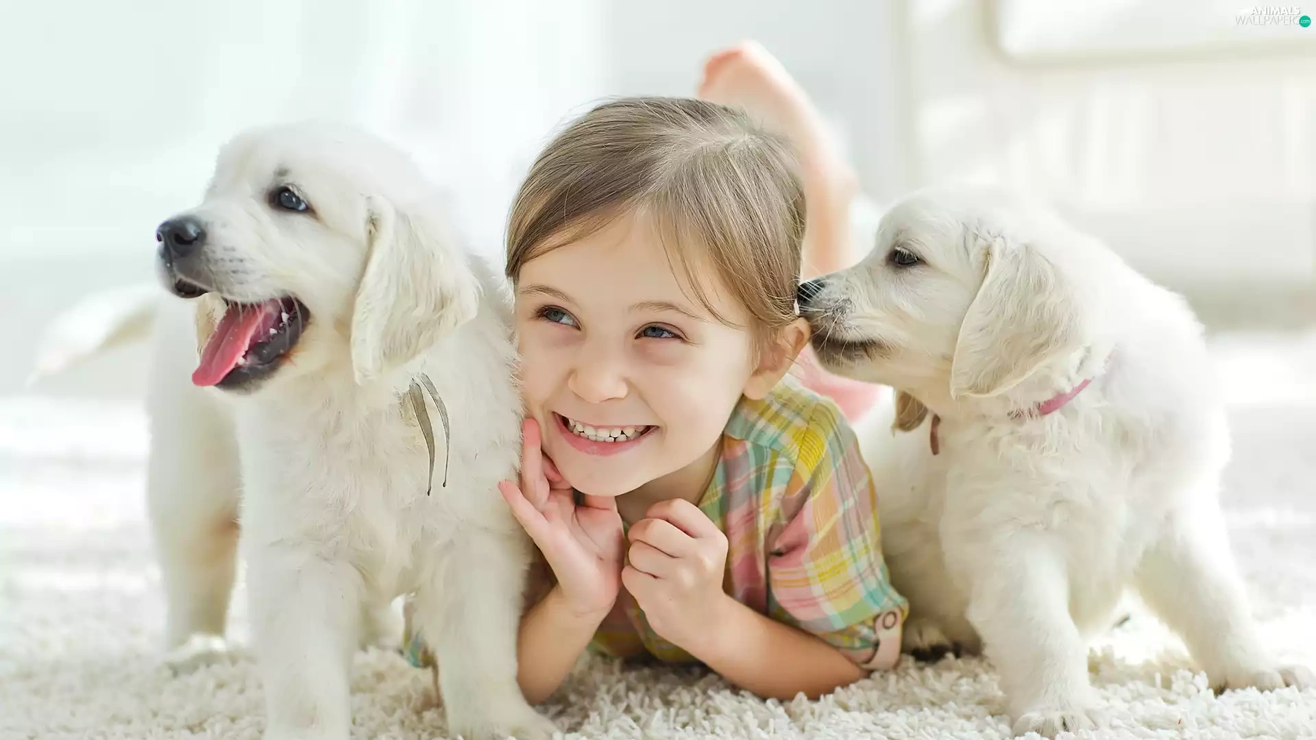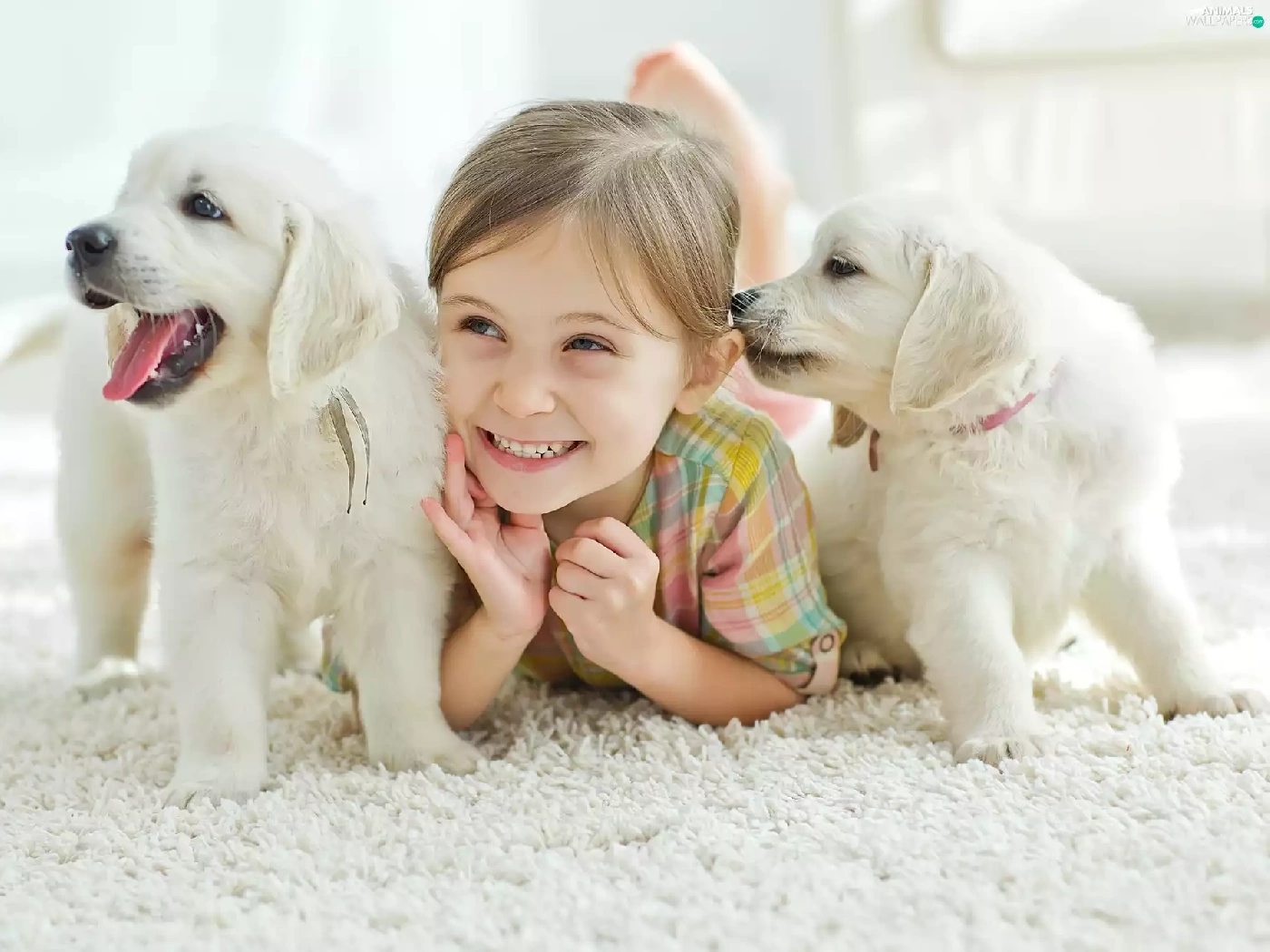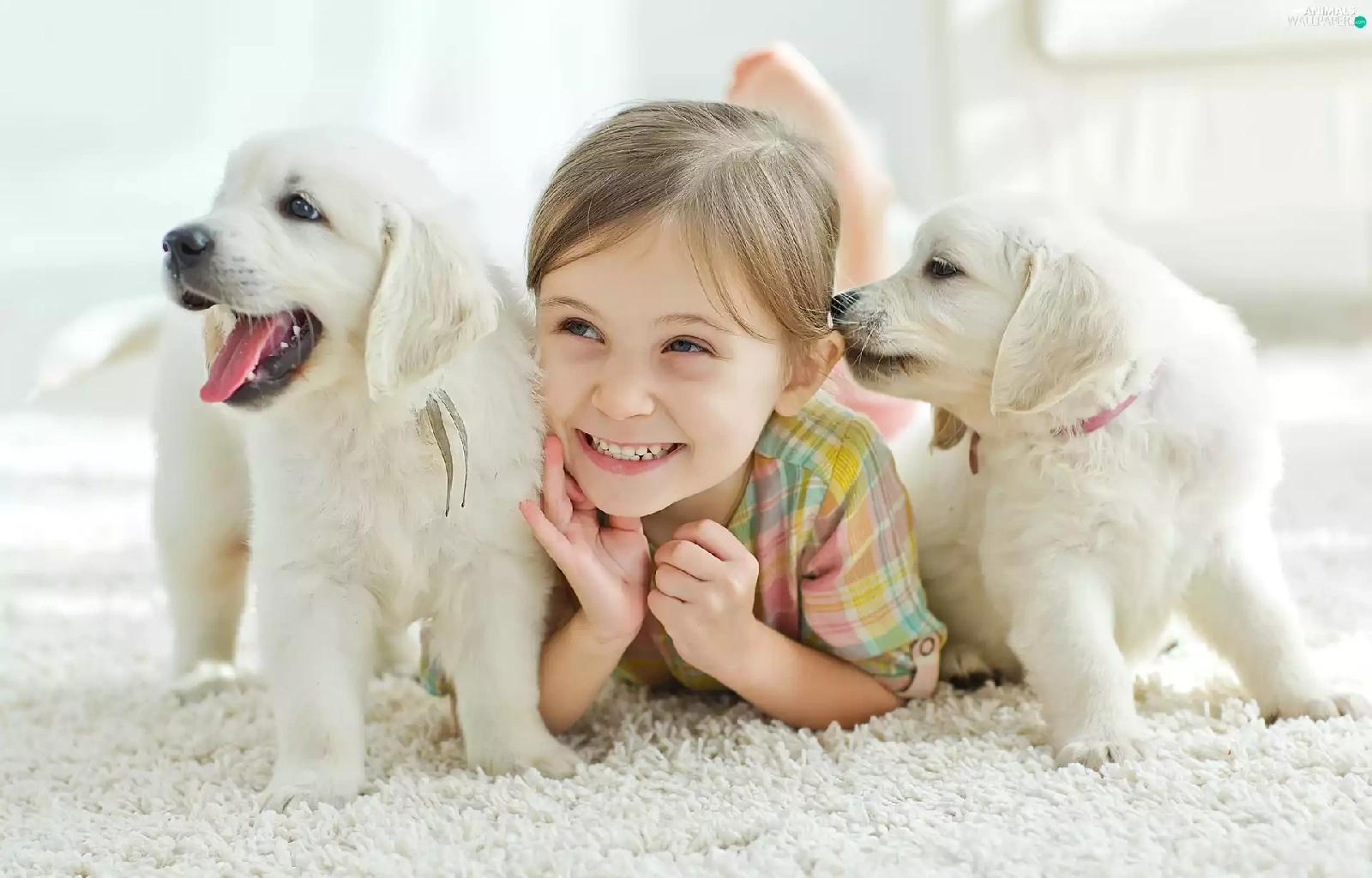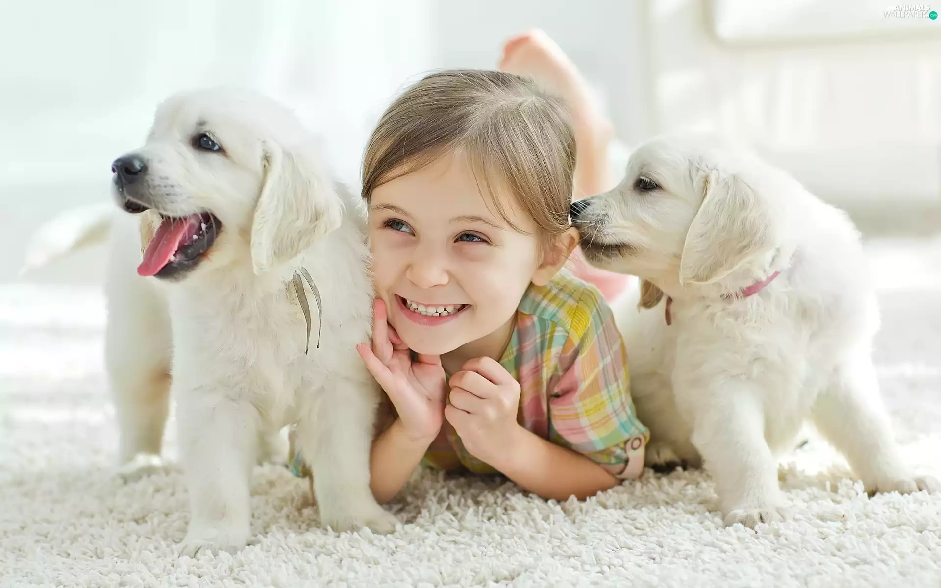 Two cars, smiling, puppies, Golden Retriever, White, girl