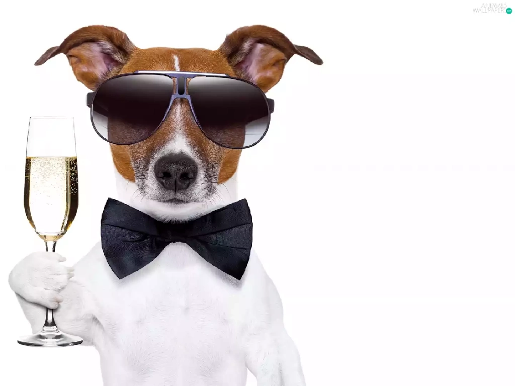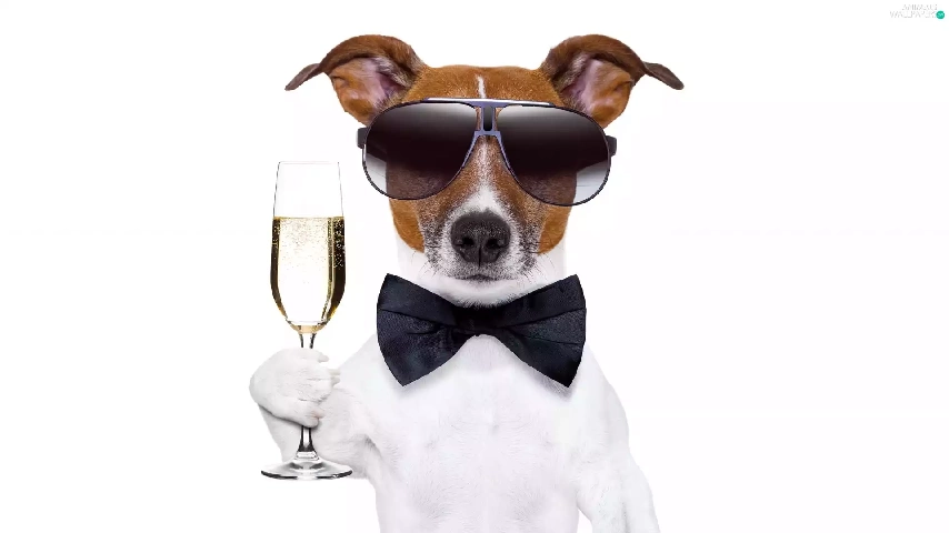 dog, Champagne, Funny, glass