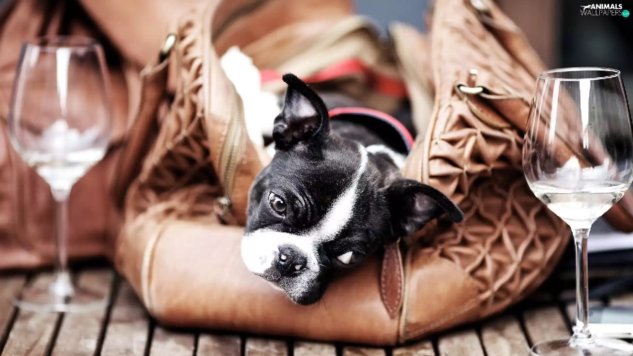 glasses, doggy, bag