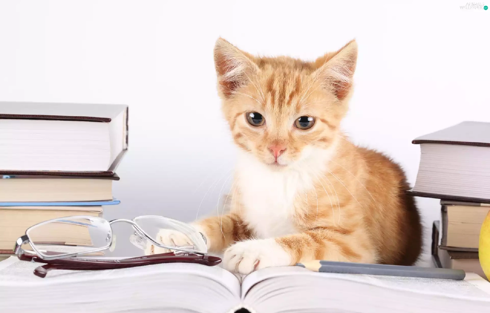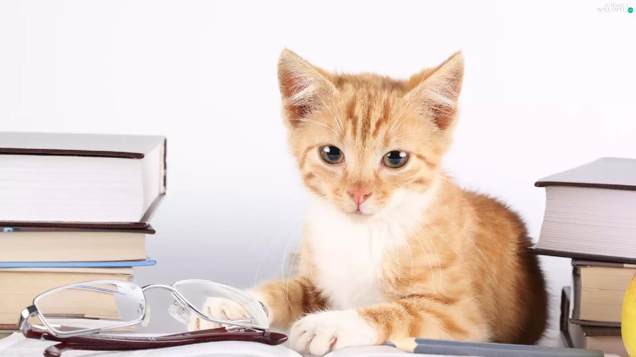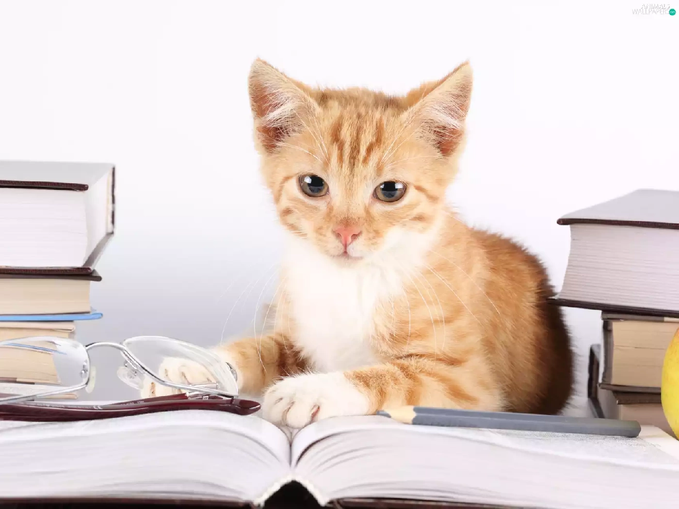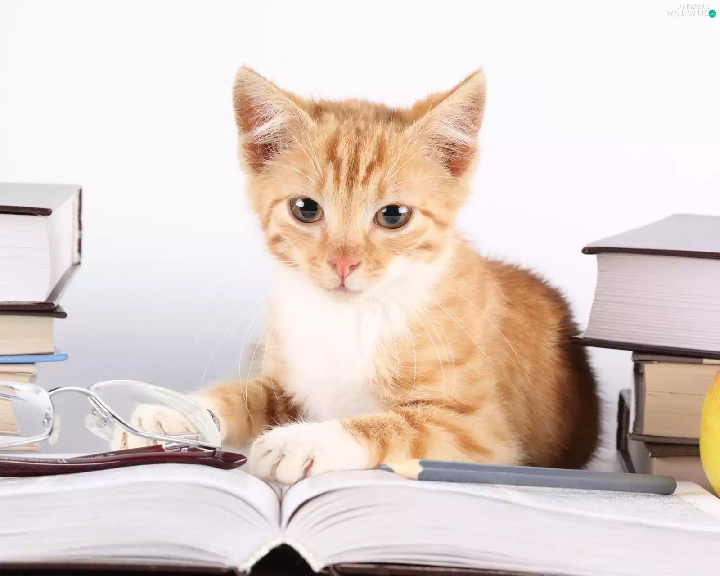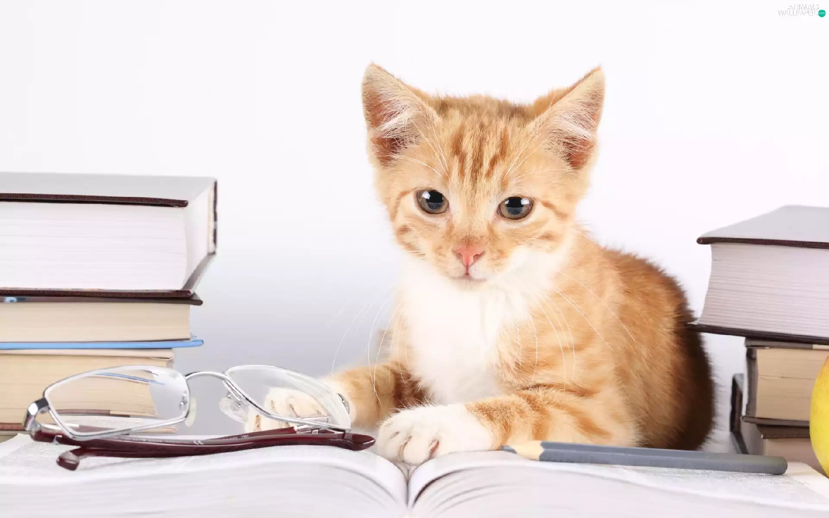 Glasses, kitten, Books