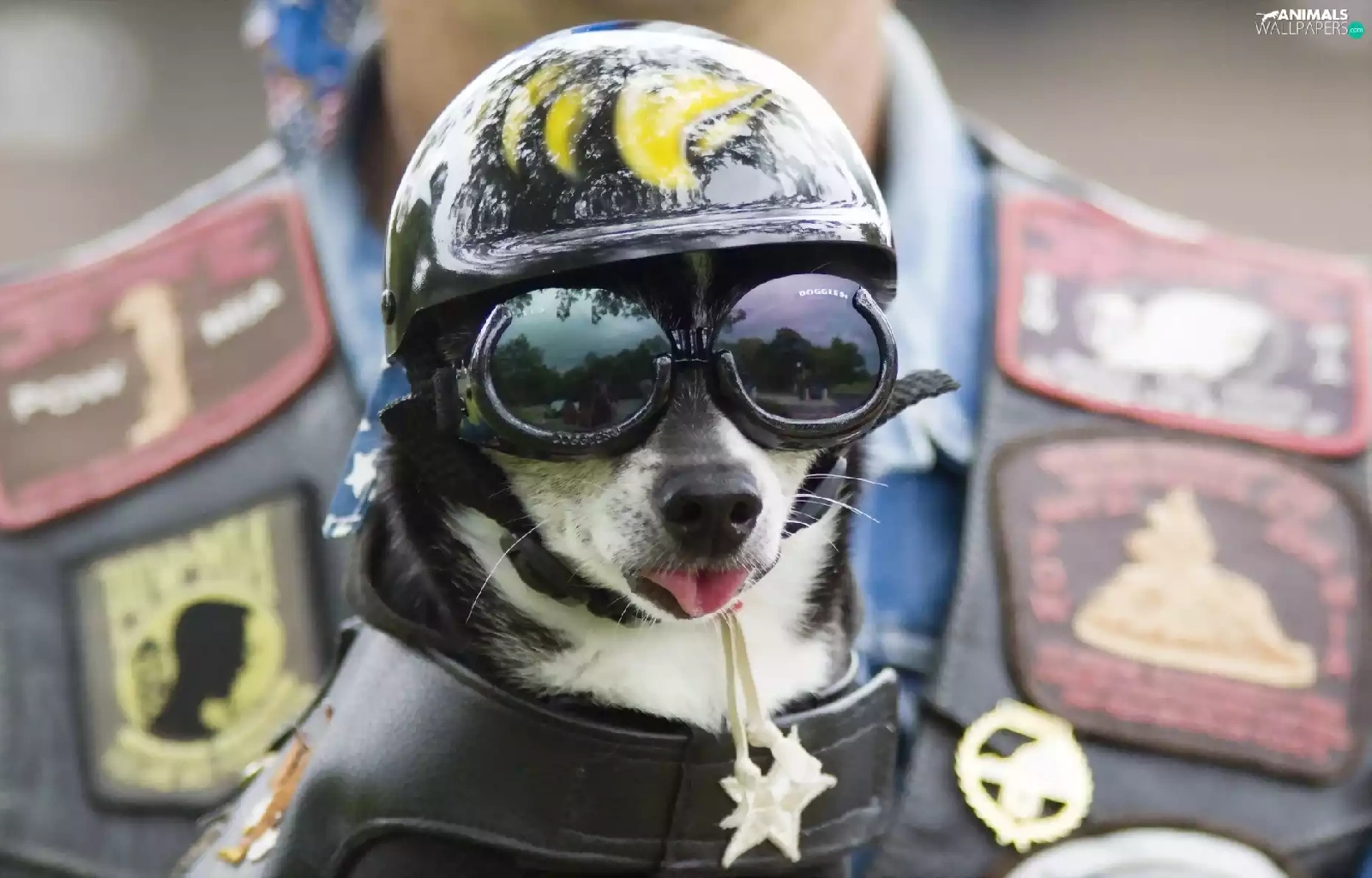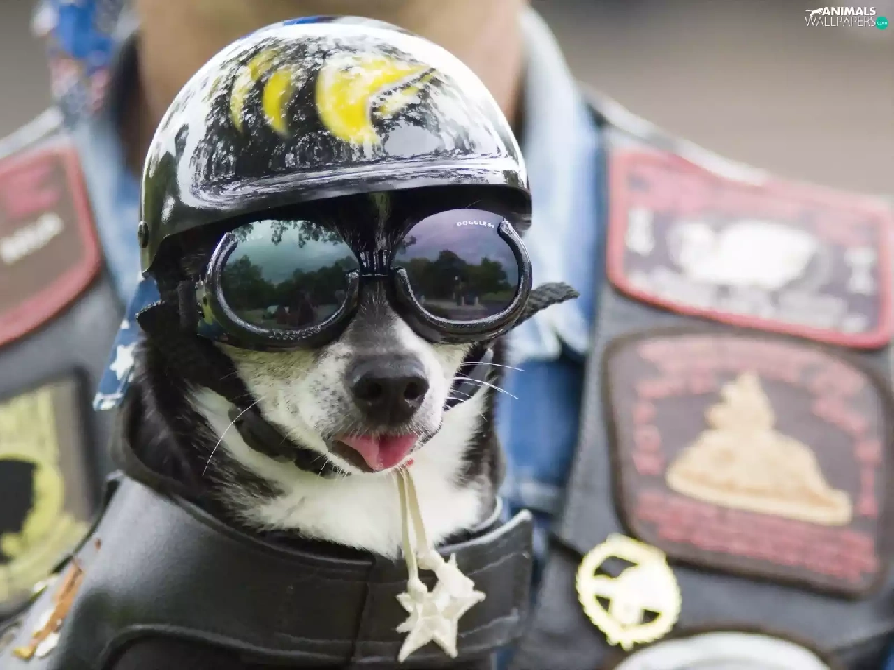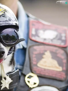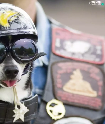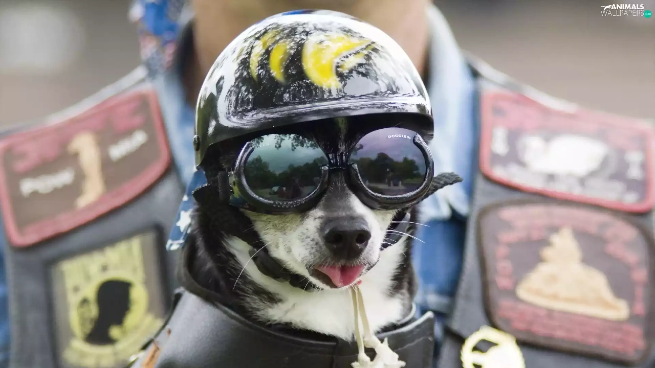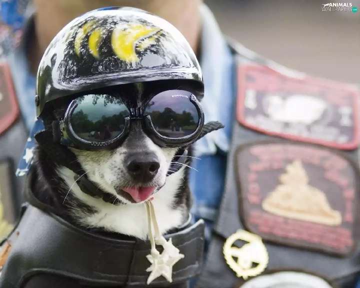 Glasses, dog, helmet