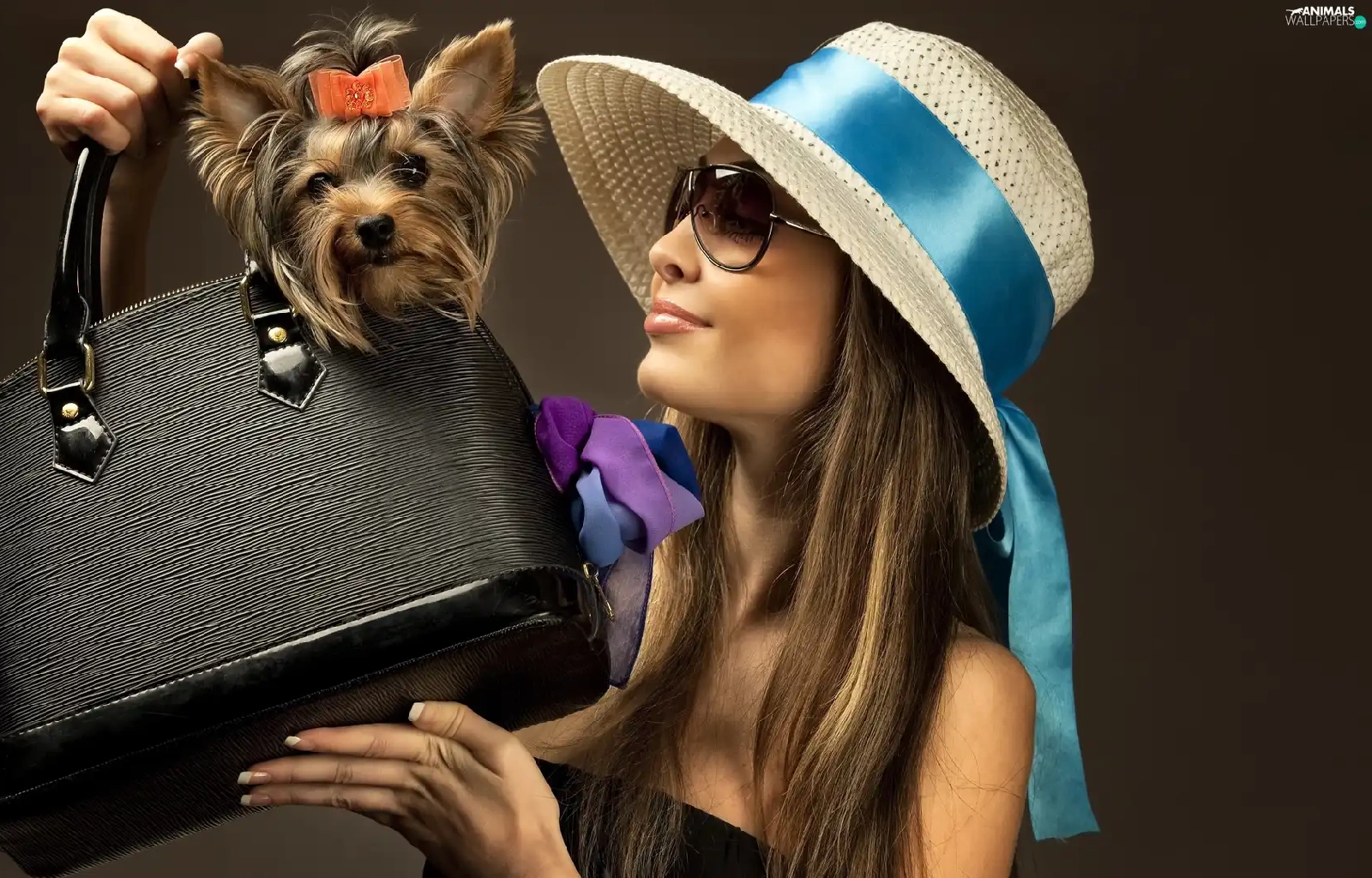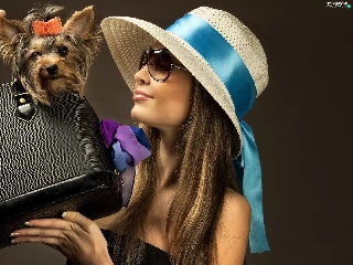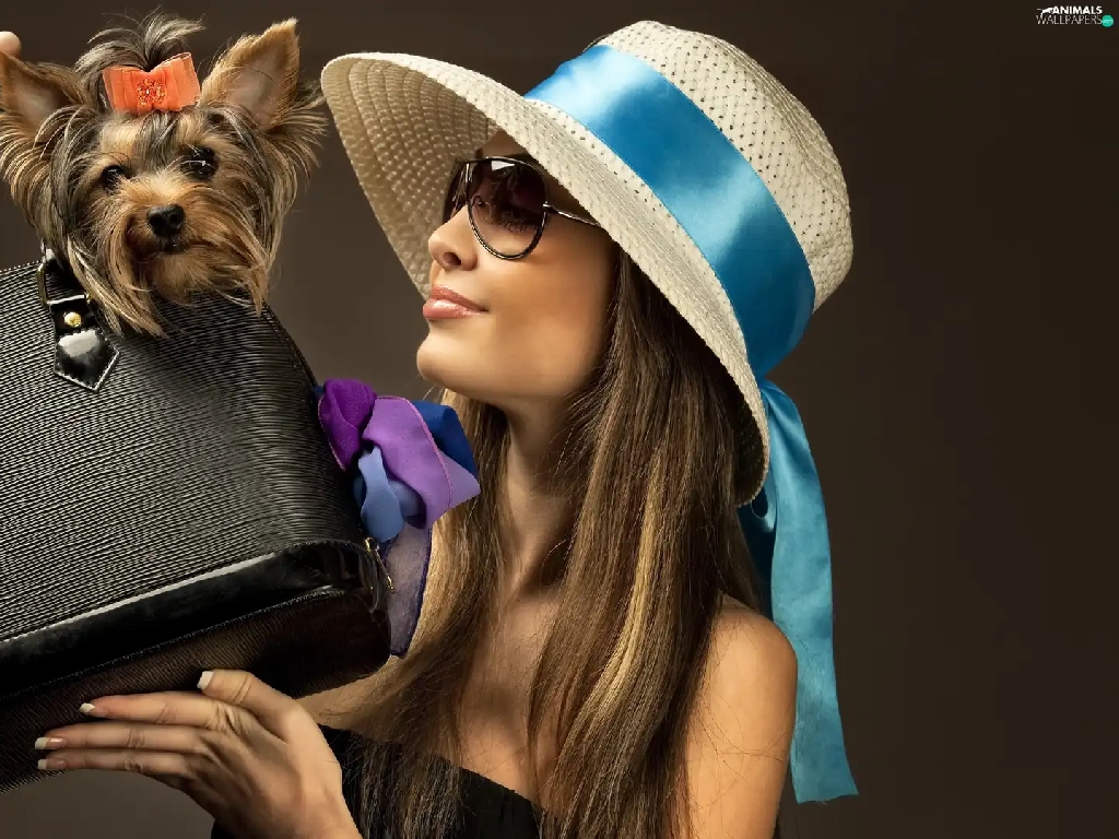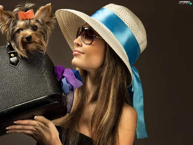 Glasses, Yorkshire Terrier, Hat, Purse, Women
